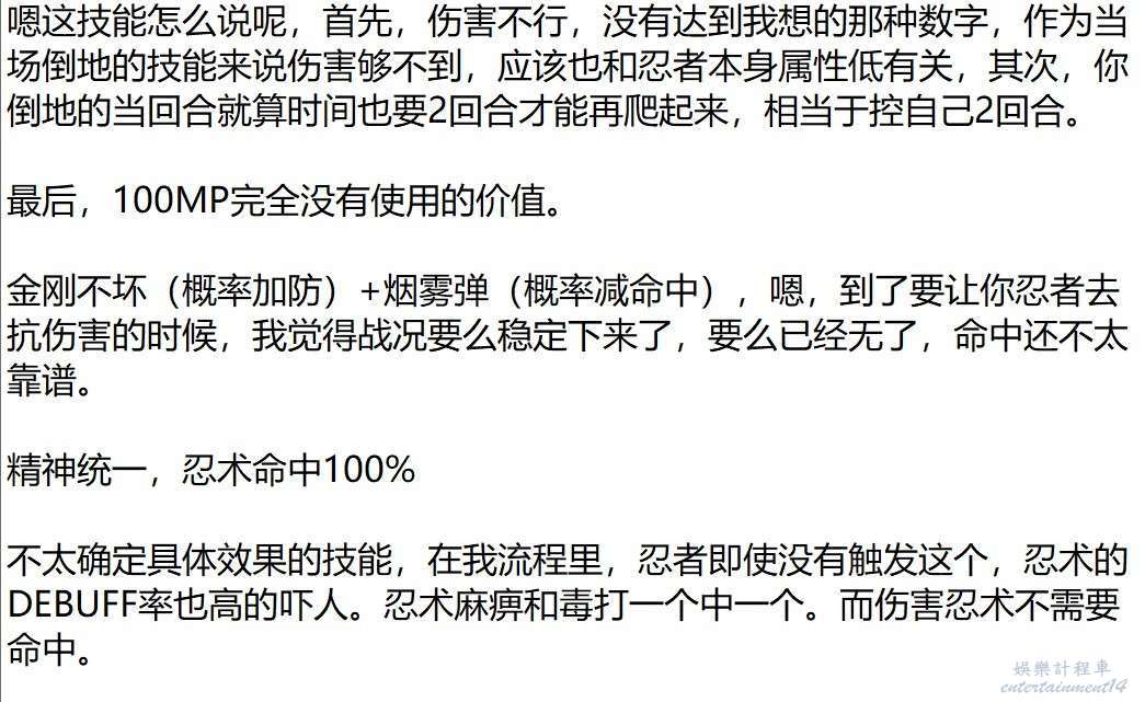 巫師剩下的技能都是通用技能,也沒有啥特點,MP上限主要是為了配合復活戰術用的,常規的法系冥想和精神集中加BUFF法術的命中率。