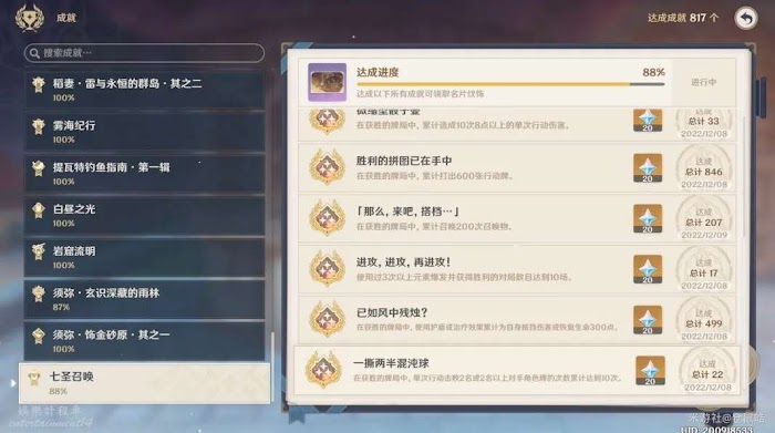 【七聖召喚】也新增了10個相關成就。
