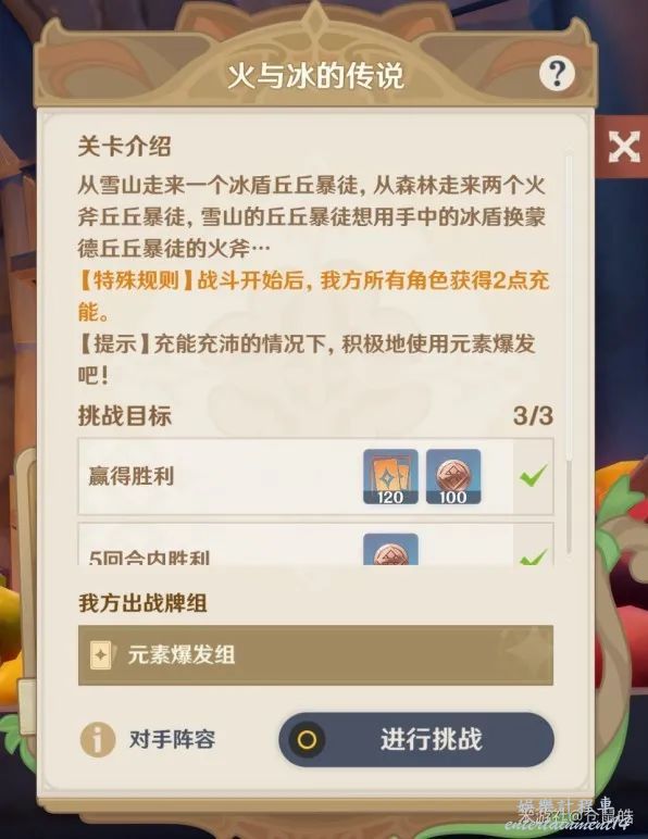 同時,對手陣容是是兩個火斧丘丘暴徒和一個冰盾丘丘暴徒,血量較厚(能打很多輪)。