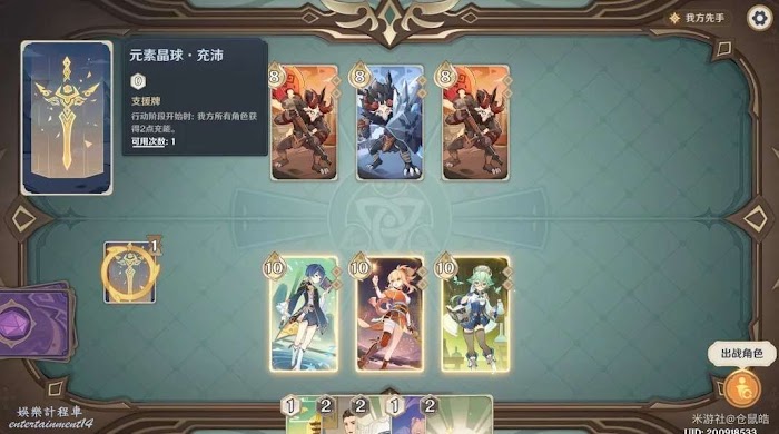 上場順序我選擇的是行秋-宵宮-砂糖,每次無腦點元素爆發就行,也可以多用幾張暫時用不上的行動牌以達成成就勝利的拼圖已在手中(在獲勝的牌局中。累計打出600張行動牌)