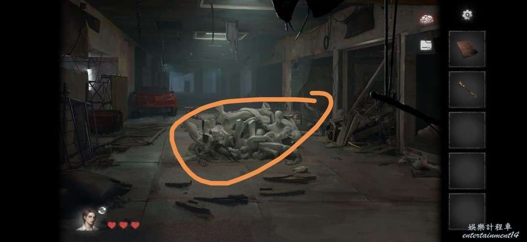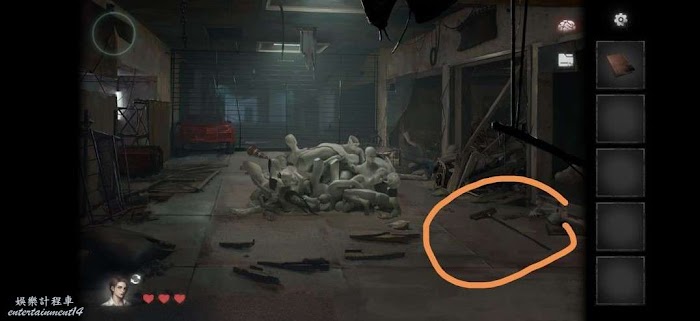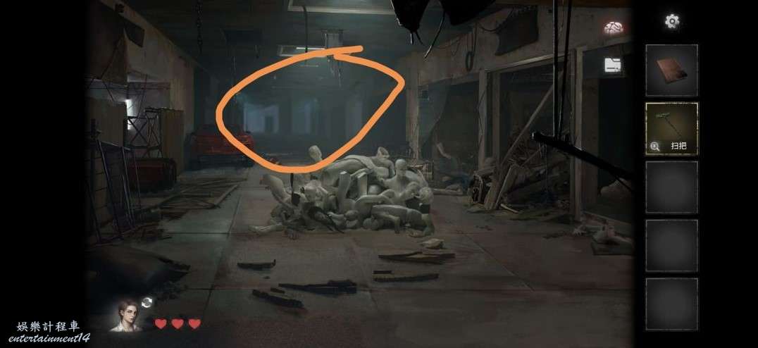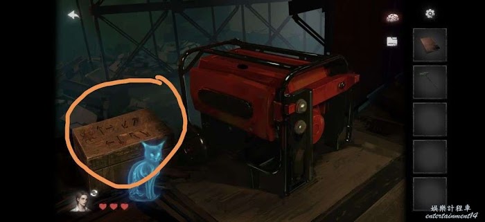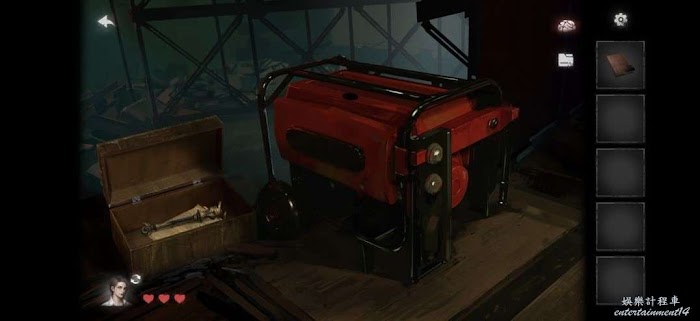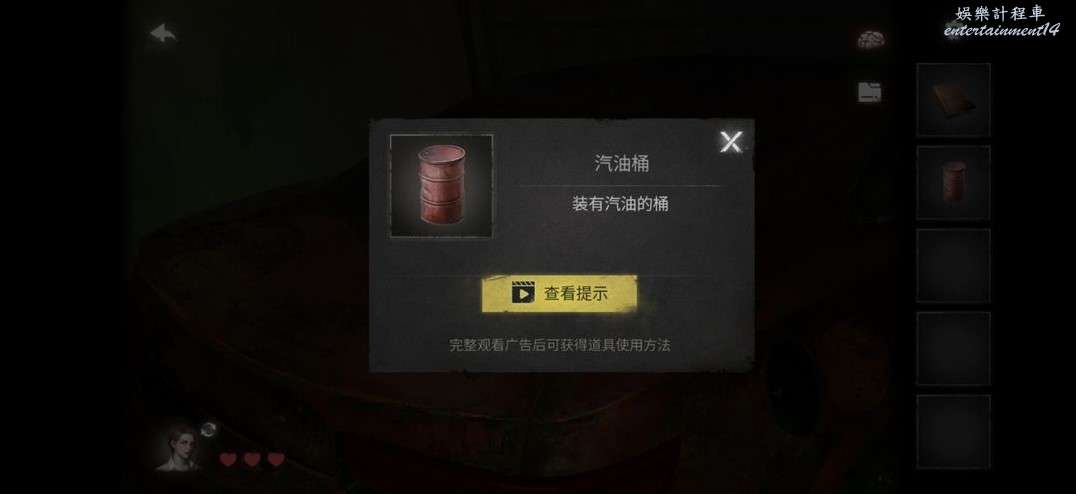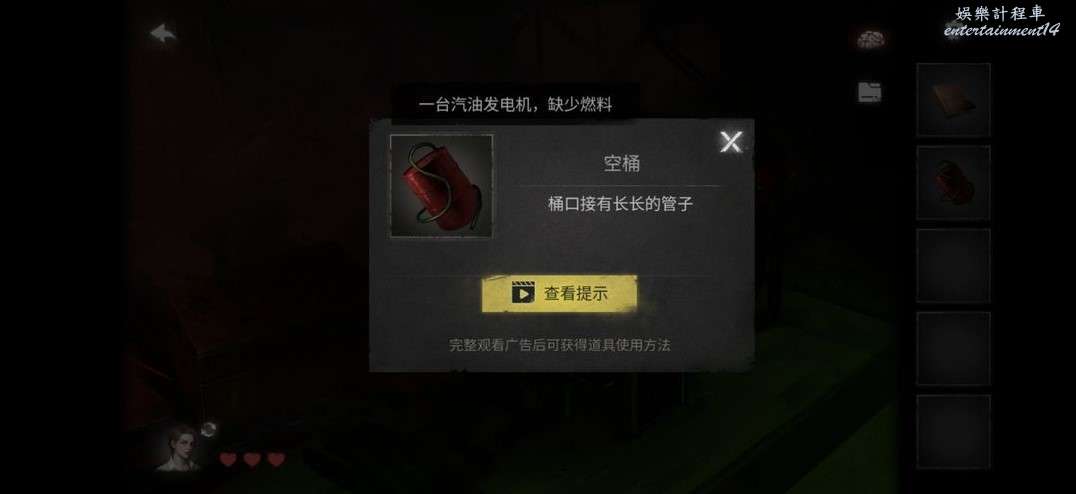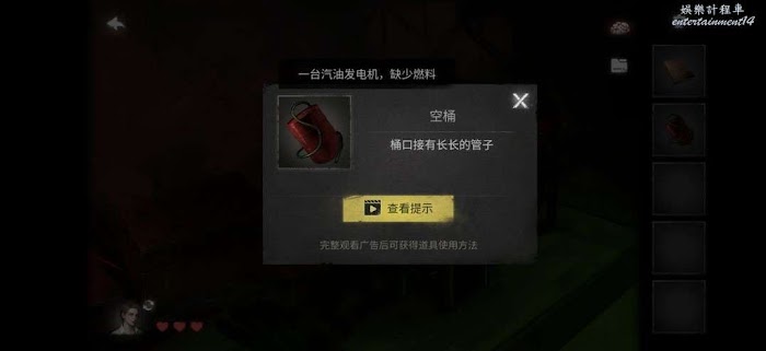 切換女主視角點擊左邊的燃油發電機,獲得空桶