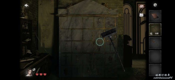 進入柵欄門內,樹上有個閃光點,用掃把點擊,獲得鑰匙