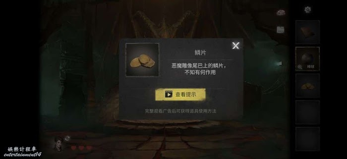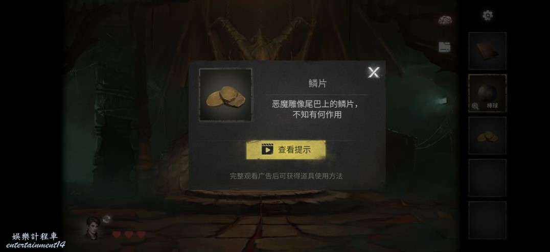 先開李斯特視角,點擊左下方尾巴然後做遊戲,按石頭形狀填洞,填完開門,獲得鱗片