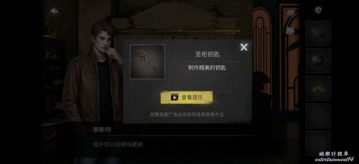 在櫃子旁邊獲得聖櫃鑰匙,把棒球放進聖櫃