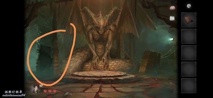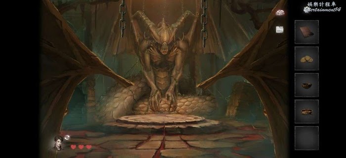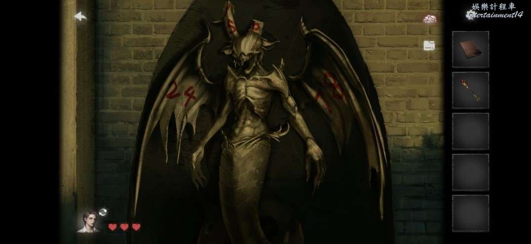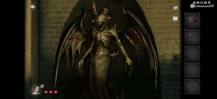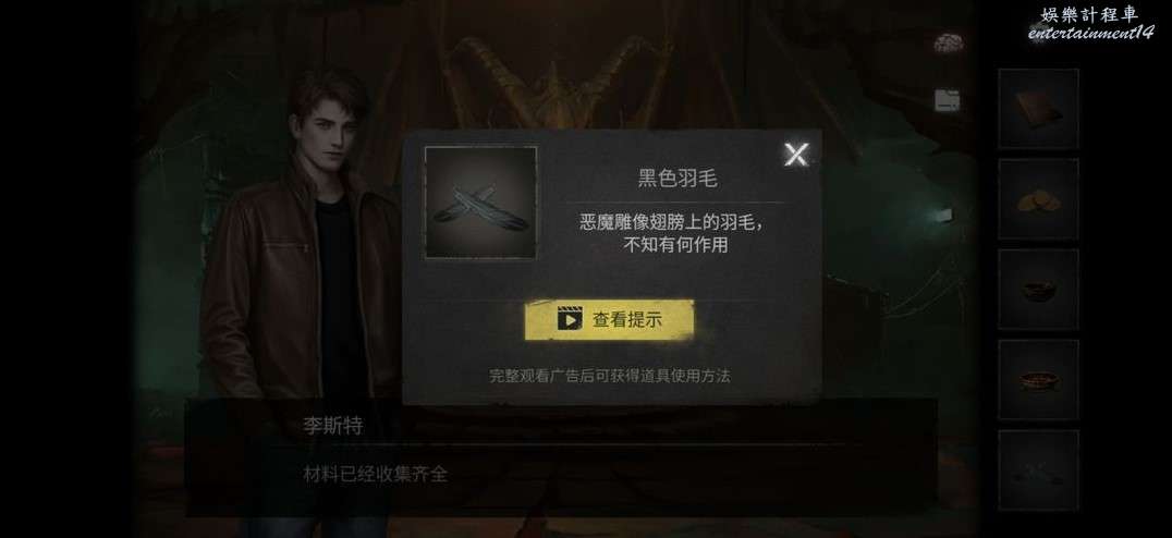 切換女主視角,進入內間點擊惡魔像,切換男主視角,進入惡魔所在房間,根據女主視角的惡魔像上數位順序點擊惡魔,順序為左角左翅右角左翅左角右角右翅右翅,點擊完獲得黑色羽毛