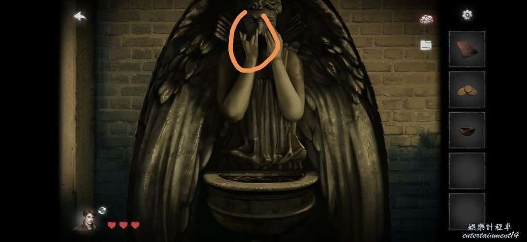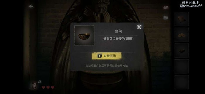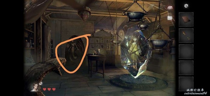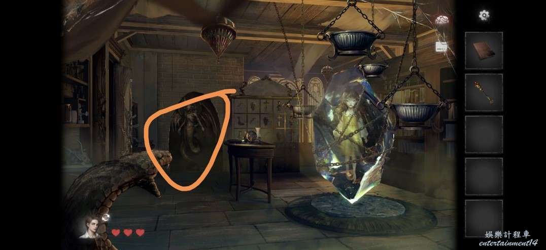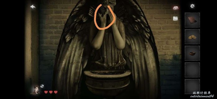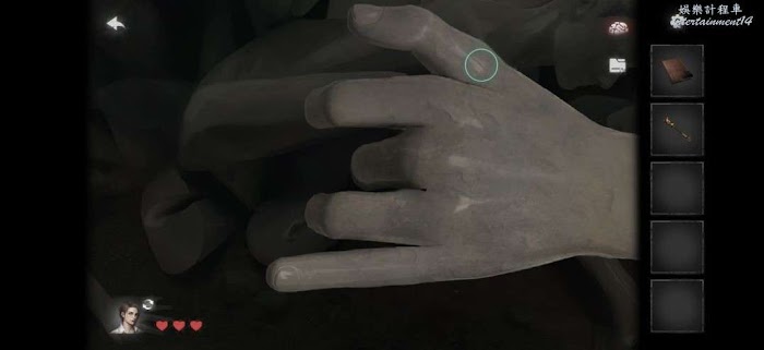 切換女主視角,根據天使右手擺放人偶手指,擺放好獲得紅寶石