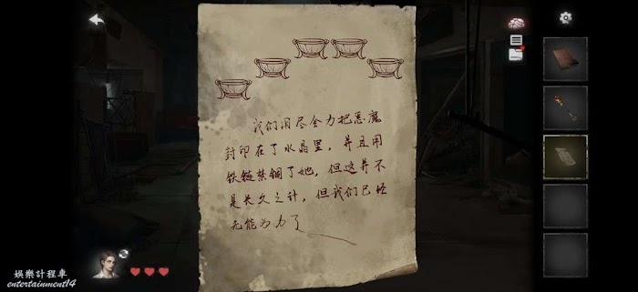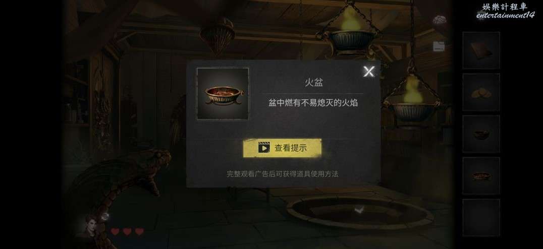 切換男主視角,根據紙條內容擺放盆,之後獲得火盆