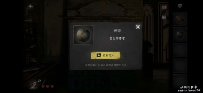 點擊左側太陽門,玩遊戲,用掃把掃門,拼好拼圖,門打開,進門,用掃把掃櫃子,再用聖櫃鑰匙打開櫃子,獲得棒球