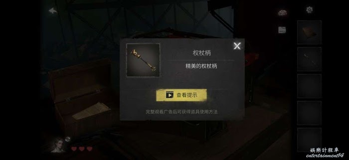 女主視角做遊戲,點權杖技能,小鬼魂飄到準星上點技能(建議廣告跳過),打完獲得紙條