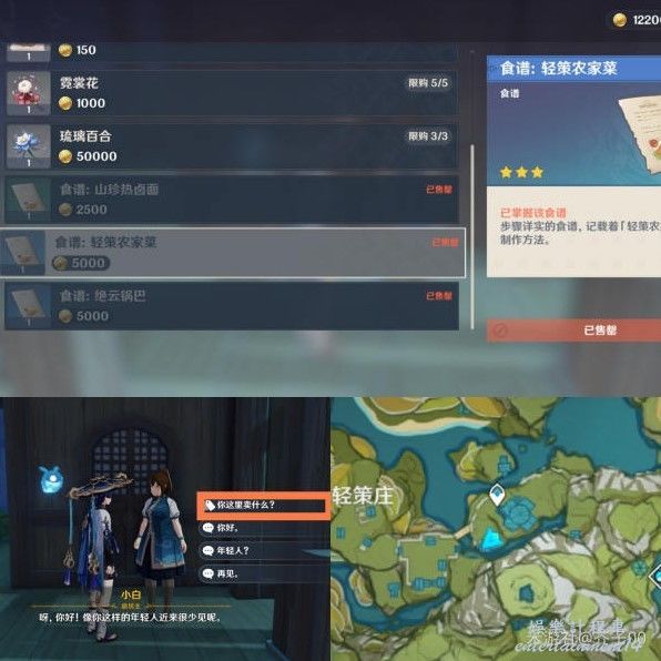 在輕策莊錨點旁邊的『豆腐坊主——小白』處購買獲得菜譜——輕策家常菜,選擇瑤瑤烹飪後獲得特殊料理。