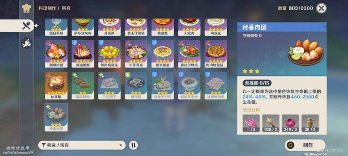 原神 (Genshin Impact) 3.4版新增角色特殊料理一覽