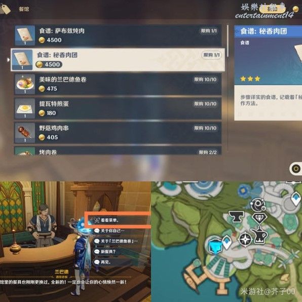 在『須彌的——蘭巴德酒館』老闆處購買,分別為《薩布茲燉肉》和《秘香肉團》。
