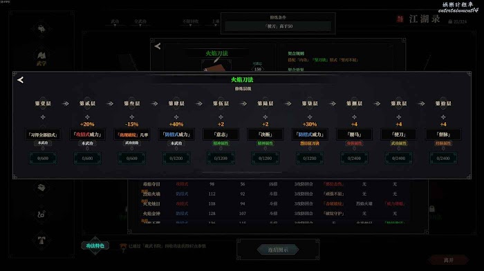 那麼所謂的神級武學就出現了,它們的共同特點是:低修為點佔用但提供大量優質屬性。在一周目和遊戲前中期學習的話可以快速提升人物的戰鬥實力。