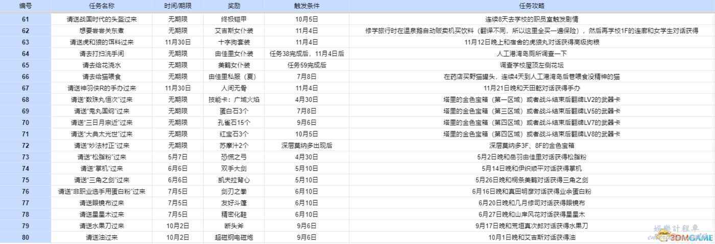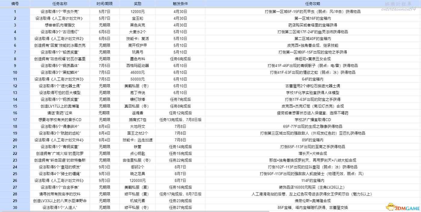 -本篇攻略除了排程和全支線任務是獵貓人老賈所做,其餘攻略均是遠古時代流傳下來的不知名的作者們整理。