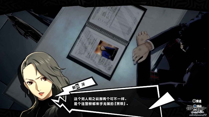 畫面再次來到審訊室中,通過新島冴的詢問我們可以得知過去的我們下一個選擇的目標是黑幫老大【金城潤矢】。