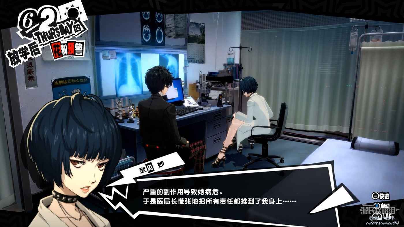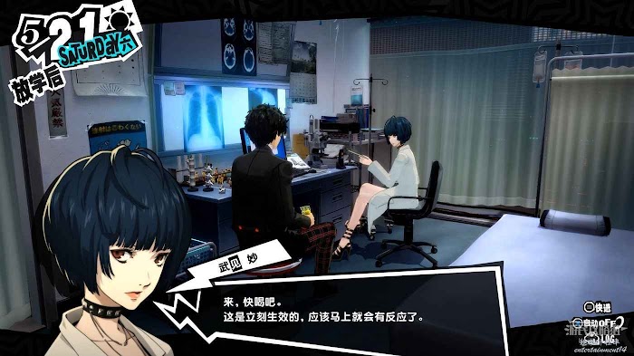 放學後可以來到武見妙的醫院參與藥物實驗,完成實驗後武見妙的COOP死神會提升至3級。