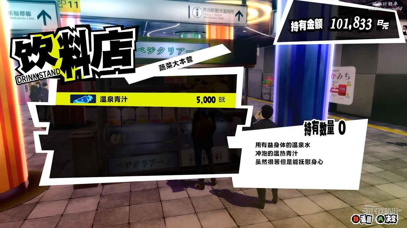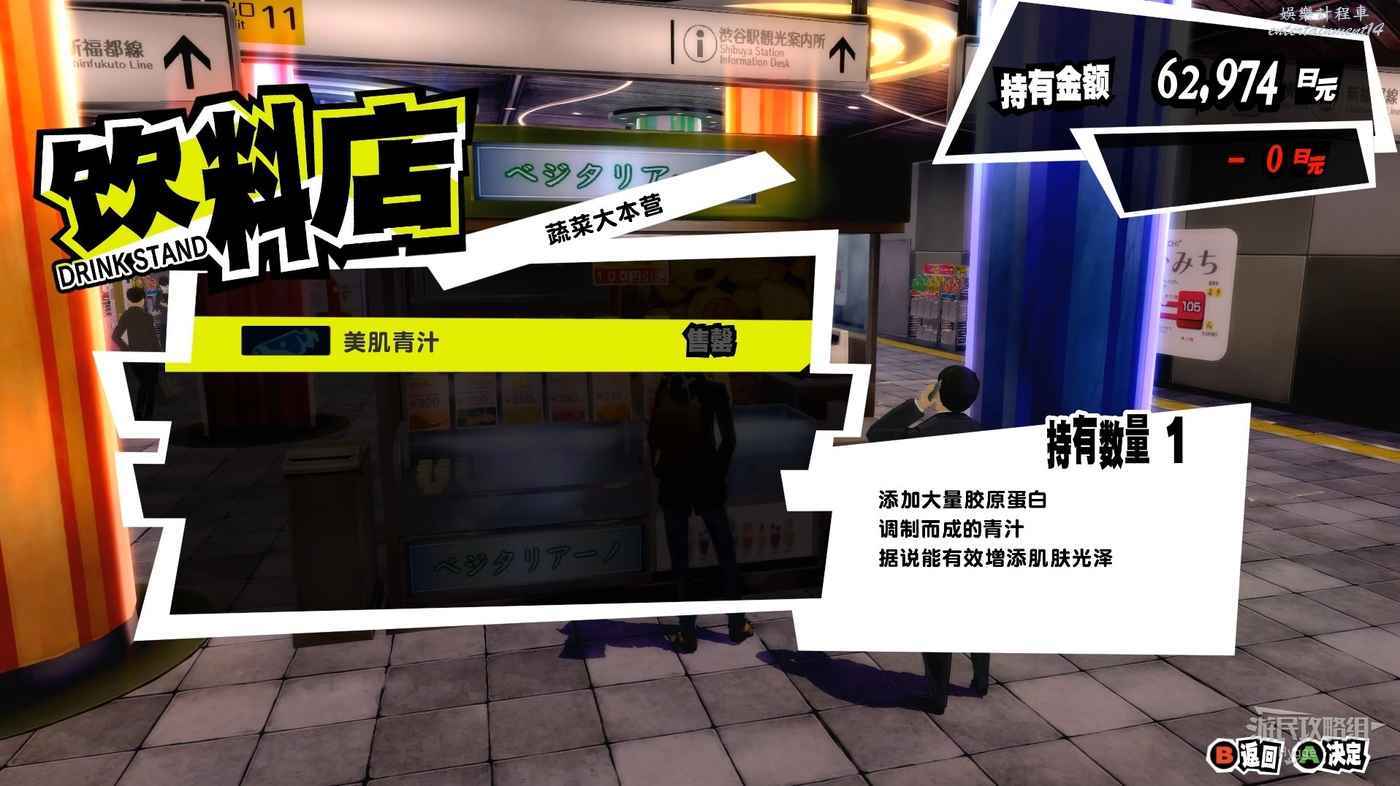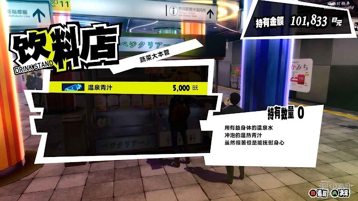 今日在澀谷地下通道中會出售溫泉青汁,飲用後可以獲得魅力點數。