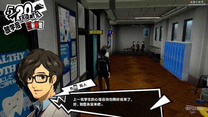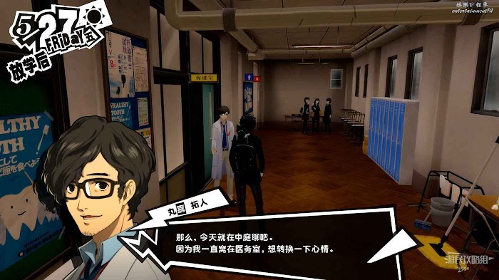 隨後來到心理輔導室與丸喜拓人交談,若5月29日在電視購物中購買了和風禮儀組合即可將【纏龍刀鑰匙圈】贈送給丸喜拓人進一步增加好感度。
