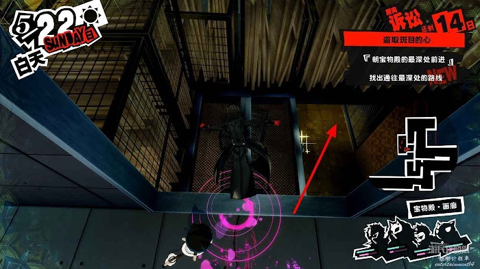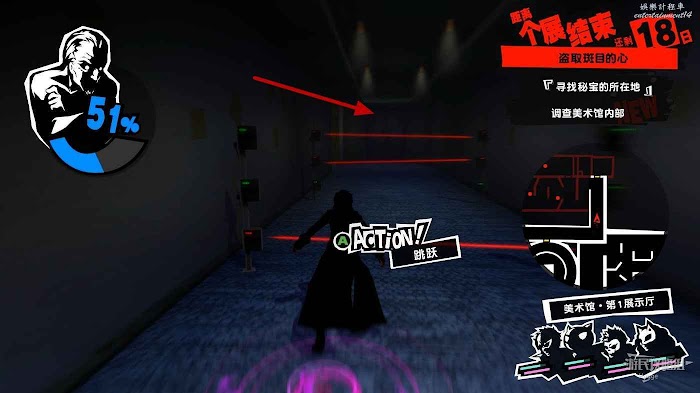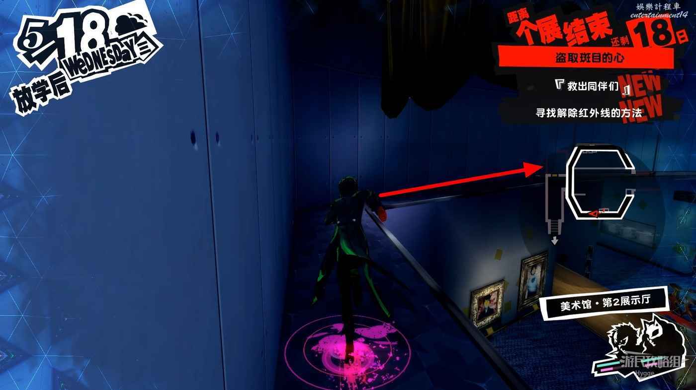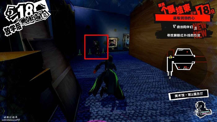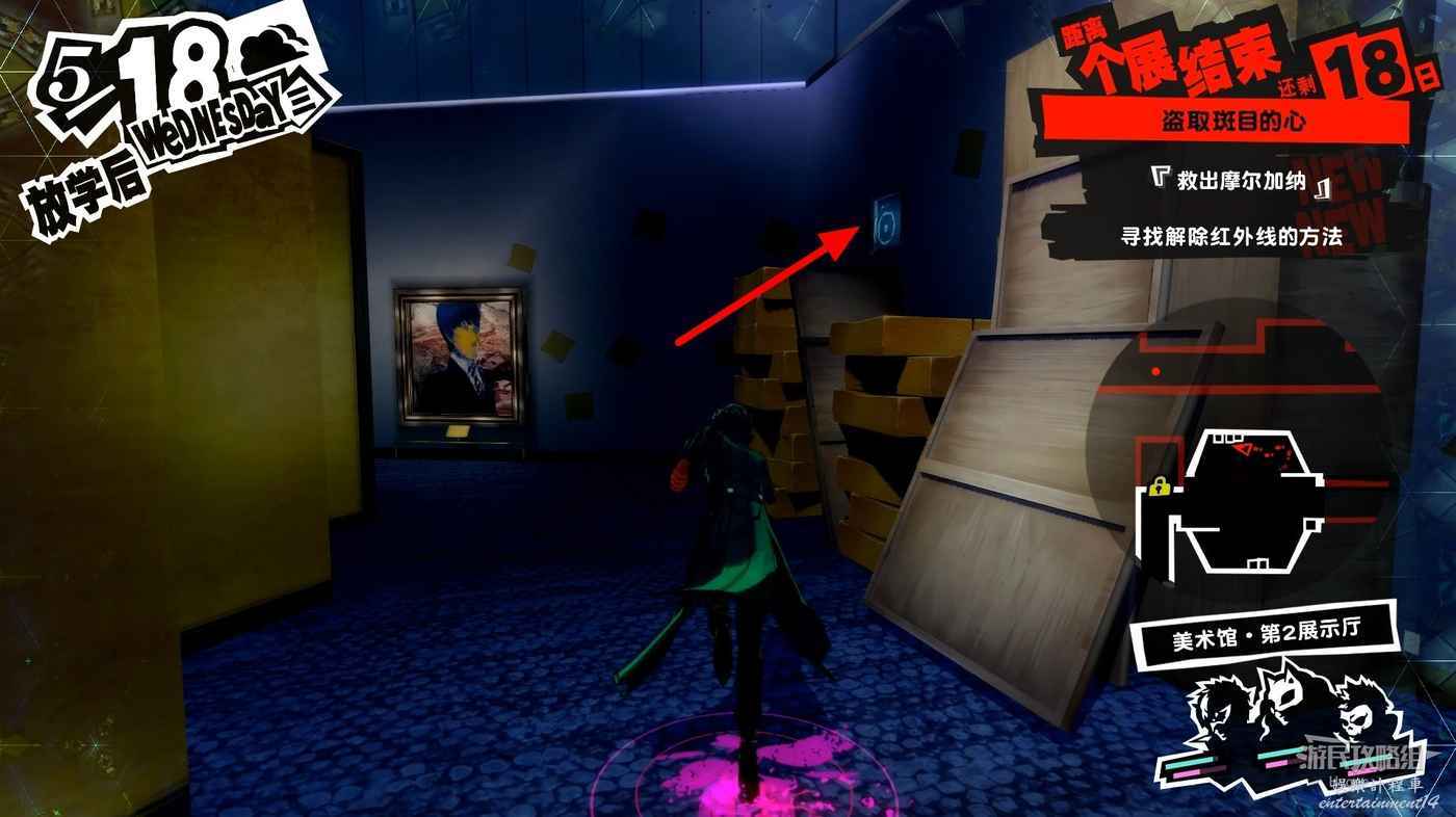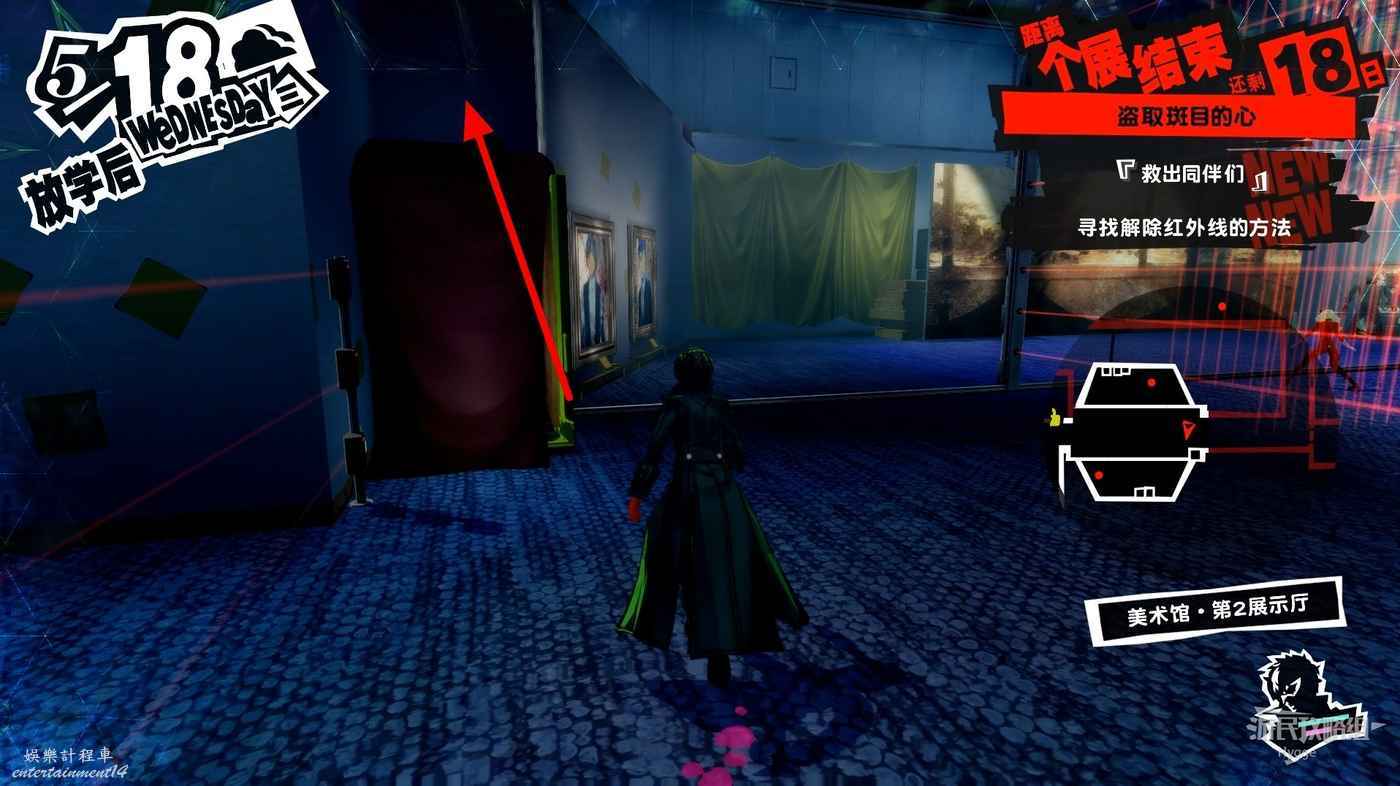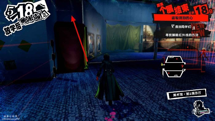 離開天鵝絨房間後按照與上次相同的路線再次進入其中。此時美術館中會出現紅外線警報器,若警報器上下任意一行沒有紅外線的話,則可以靠近警報器後按A鍵越過。若警報器三行全亮則無法通過。