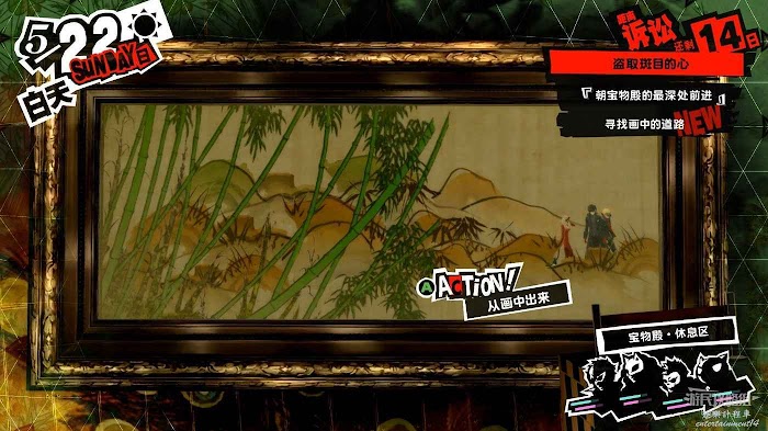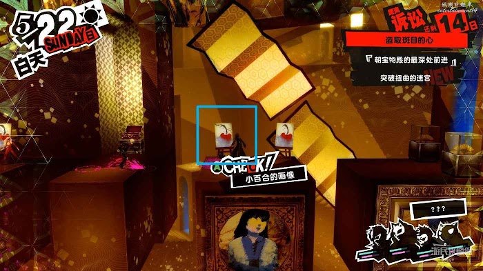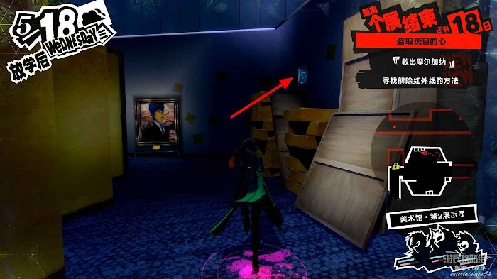 前去調查會發現此處被報警裝置重重包圍,說明現實之中斑目認為此處絕對萬無一失,因此我們必須要前往現實中改變斑目的認知,因此此次美術館的探索到此為止。