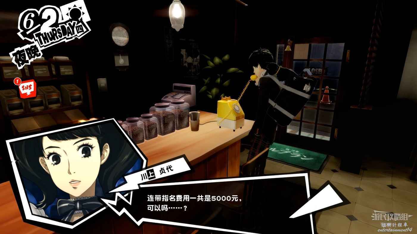 回到咖啡館時會收到川上的消息,花費5000元指名川上的女僕服務。