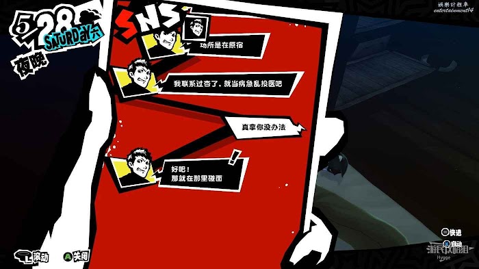 同時會收到來自三島的資訊並解鎖印象空間任務【老人狂騷曲】。隨後的夜晚時間可以自由活動,繼續磨練勇氣。
