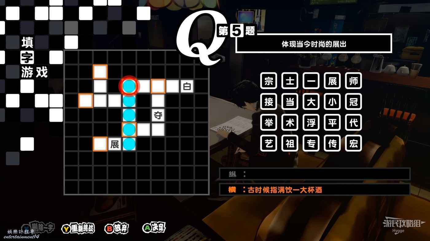 夜晚回到咖啡店後可以進行填字遊戲,正確答案為【當代藝術展】。隨後夜晚時間可在咖啡館內自由活動。