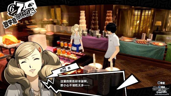 放學後與杏共度時光,選擇澀穀的自助餐可以獲得道具【巧克力噴泉】。