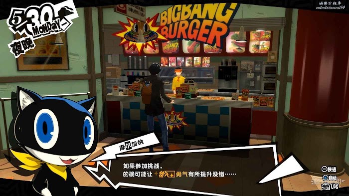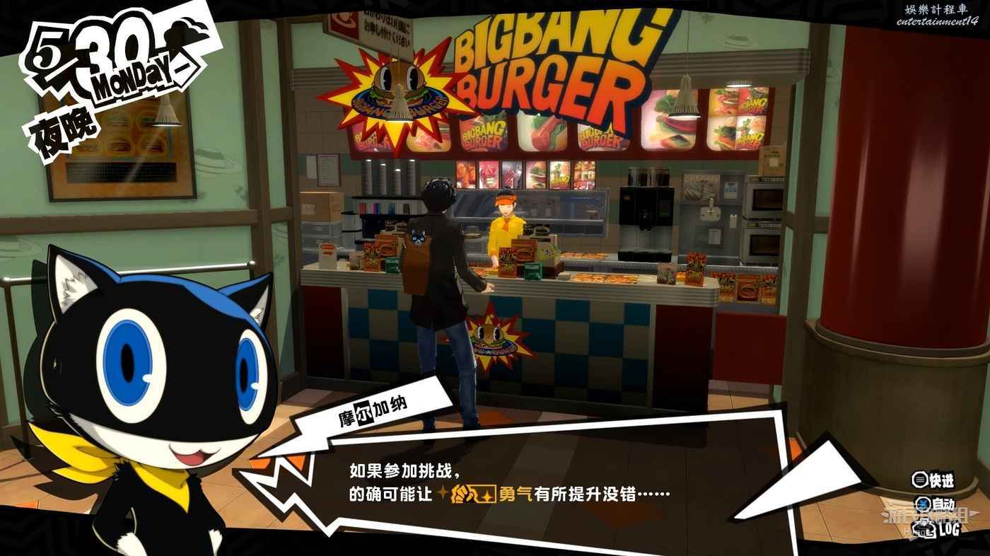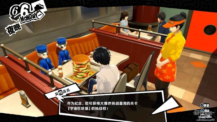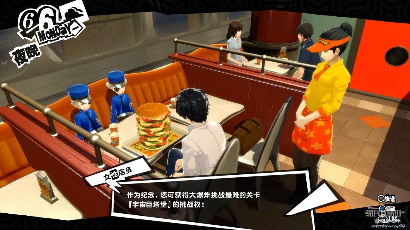 夜晚時間可以自由活動,可以通過大爆炸漢堡的挑戰磨練勇氣。