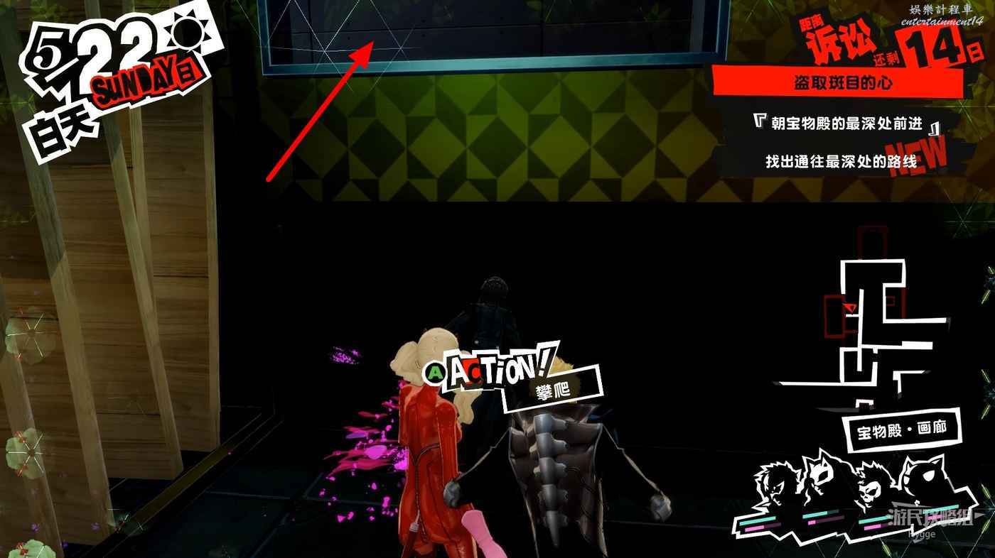 回到展示廳在前方消滅1名強大敵人後進入展示廳角落區域,使用鉤索可以到達二層。