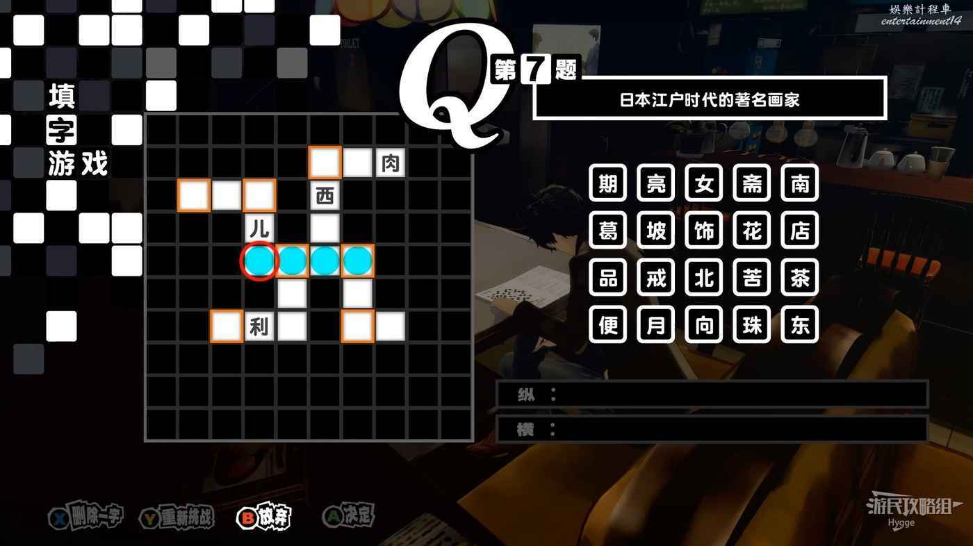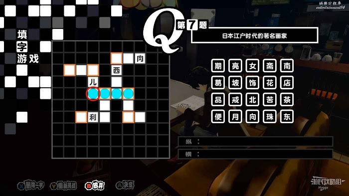 回到咖啡館後進行填字遊戲,正確答案為【葛飾北齋】,回答正確後可以獲得知識點數。