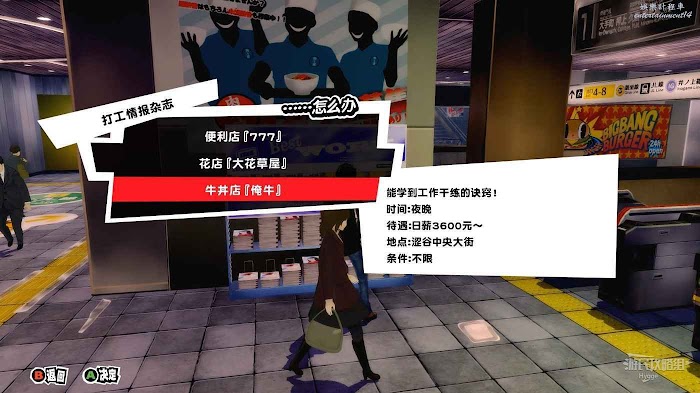 在夜晚來到澀穀站的地下通道選擇【牛丼店】進行打工。