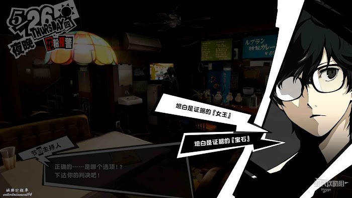 成功完成行動後回到咖啡館,電視問答的正確答案為【坦白是證據的女王】,正確回答後可以獲得知識點數。