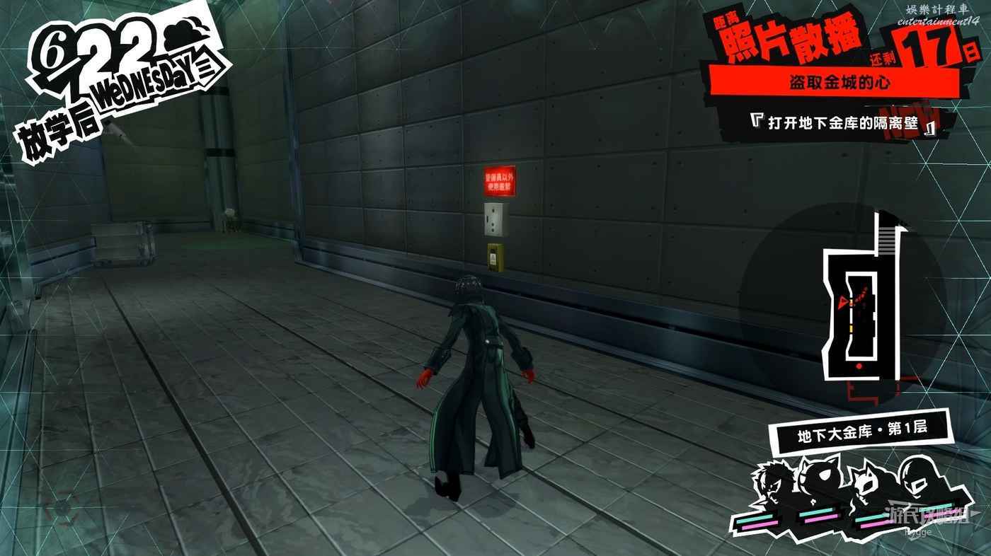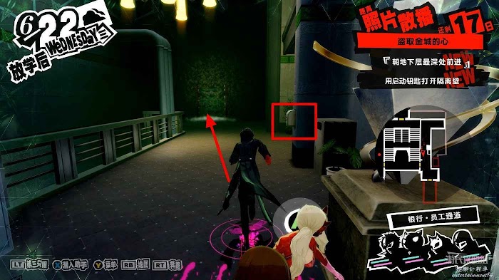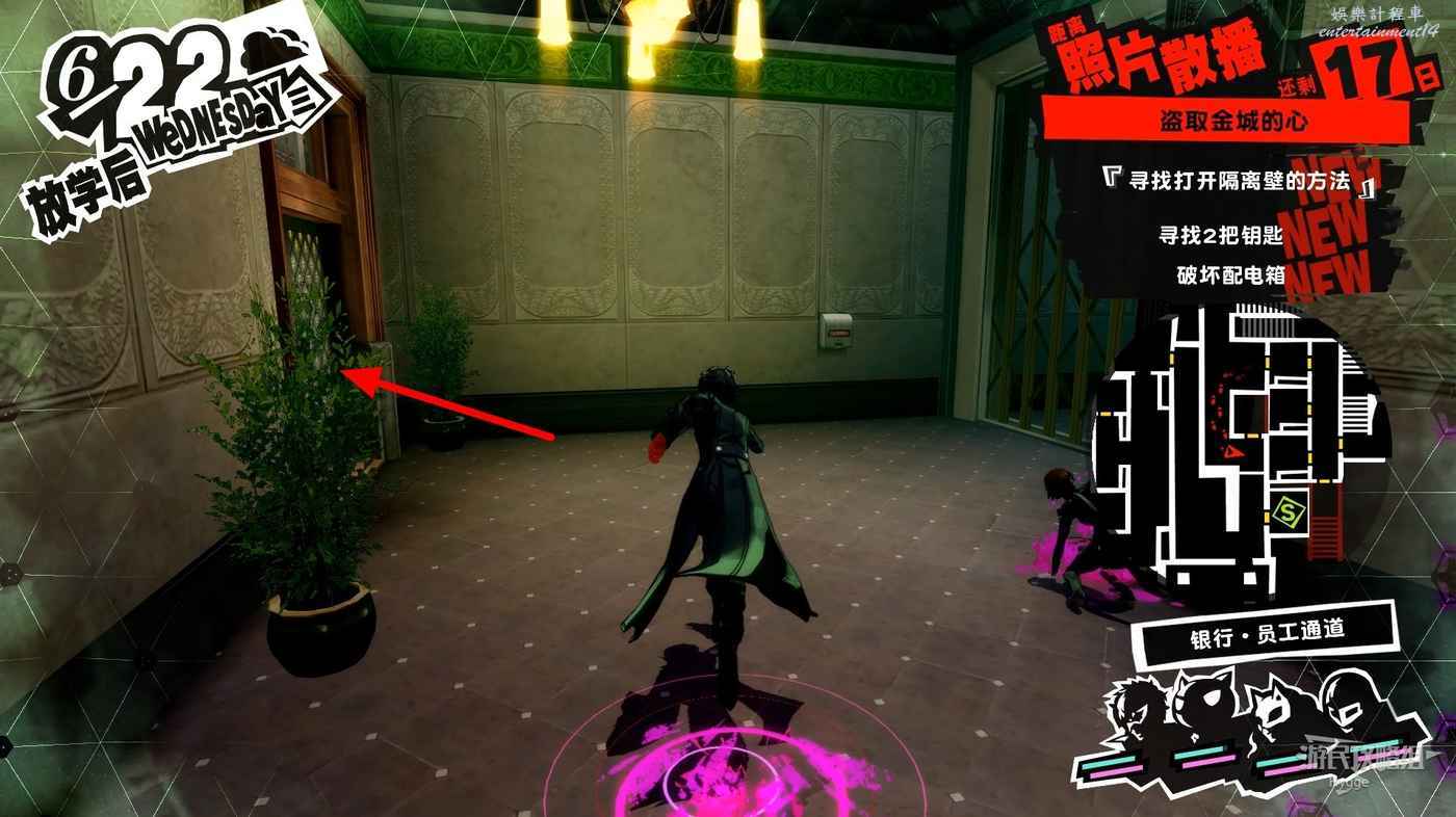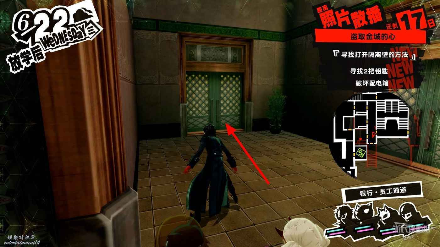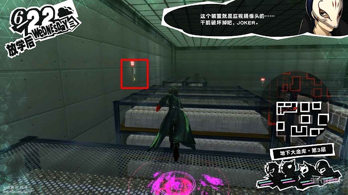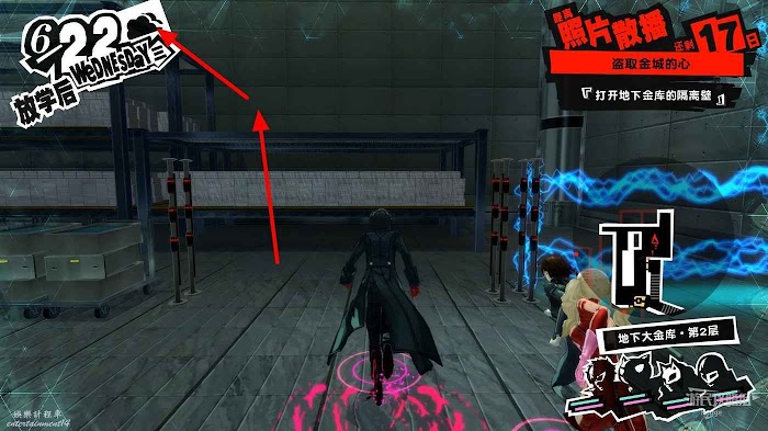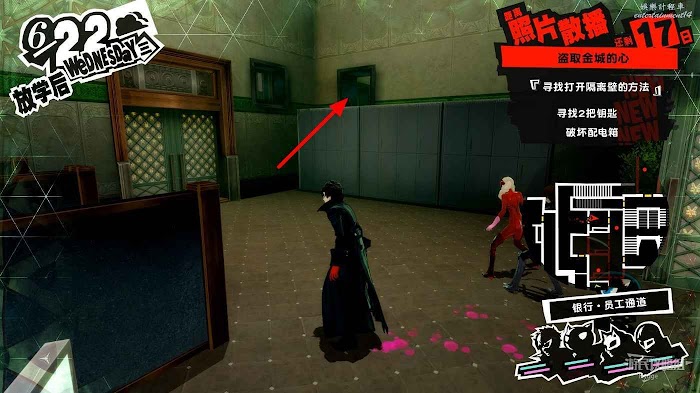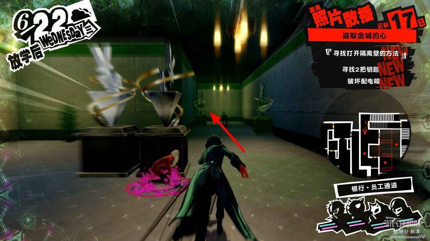 沿著走廊一直向前在北側走廊中間處破壞一個配電盒,關閉走廊中的監控。