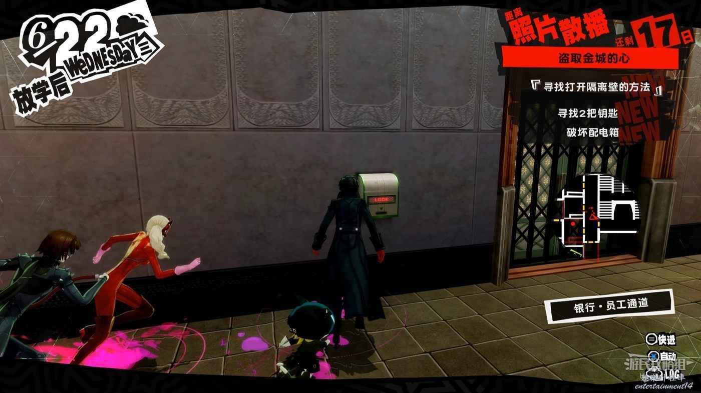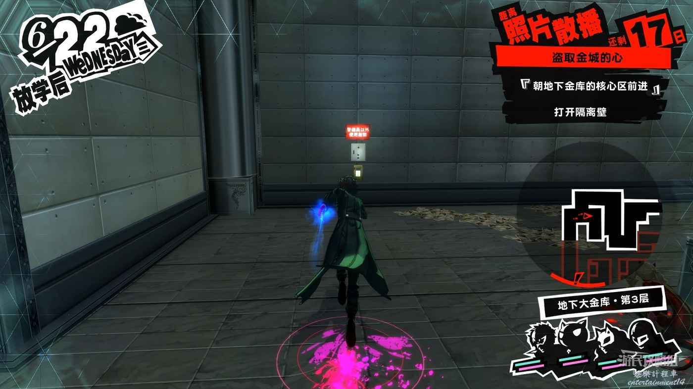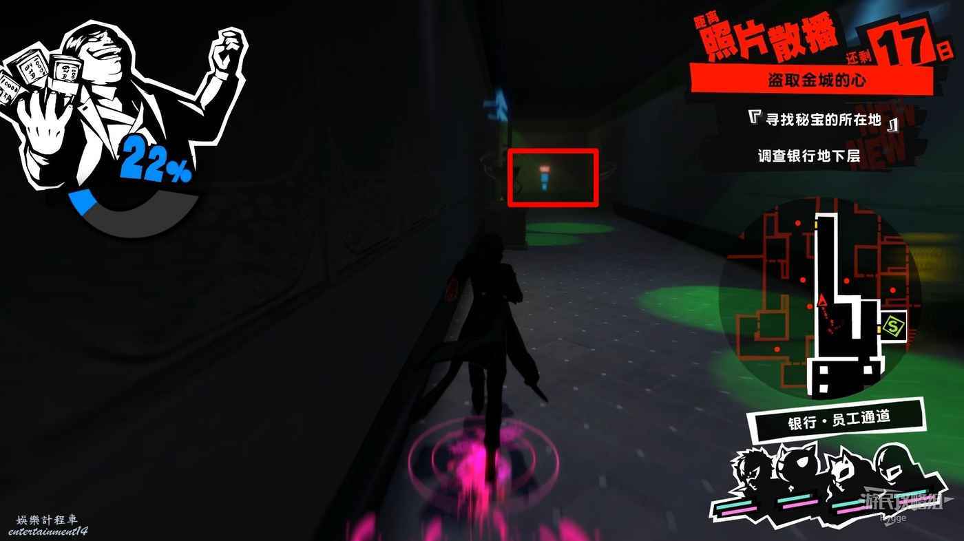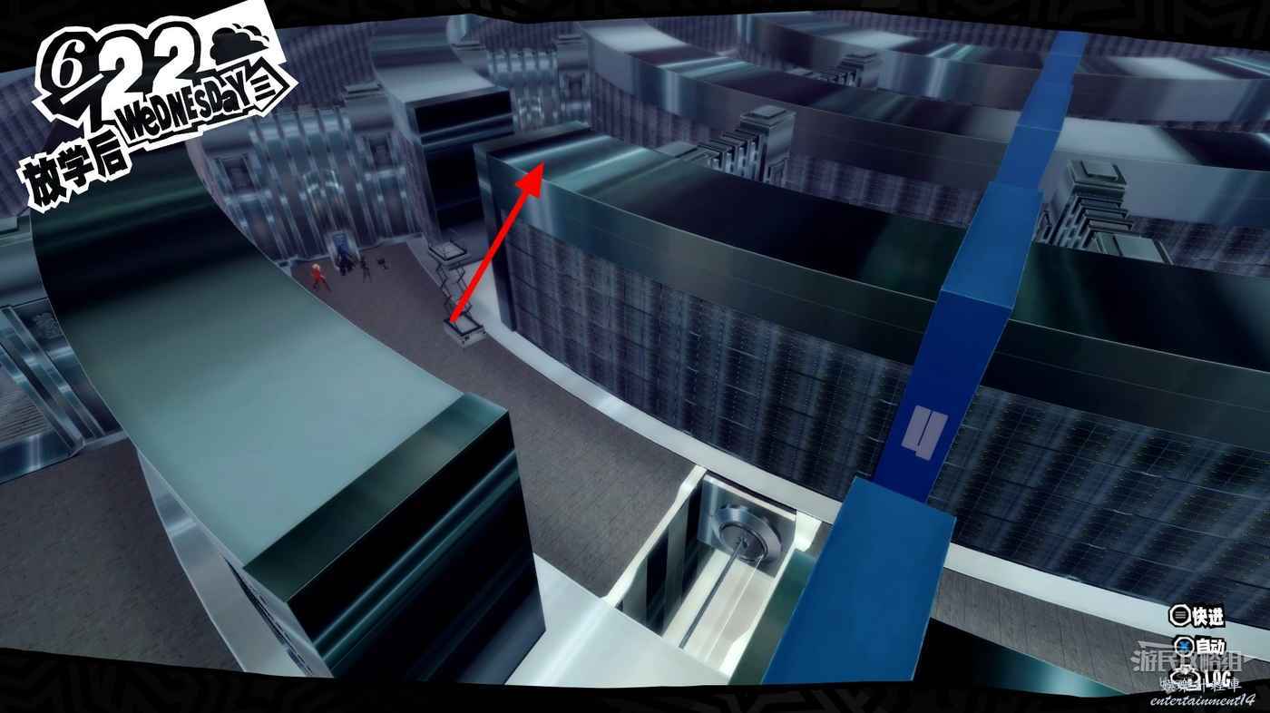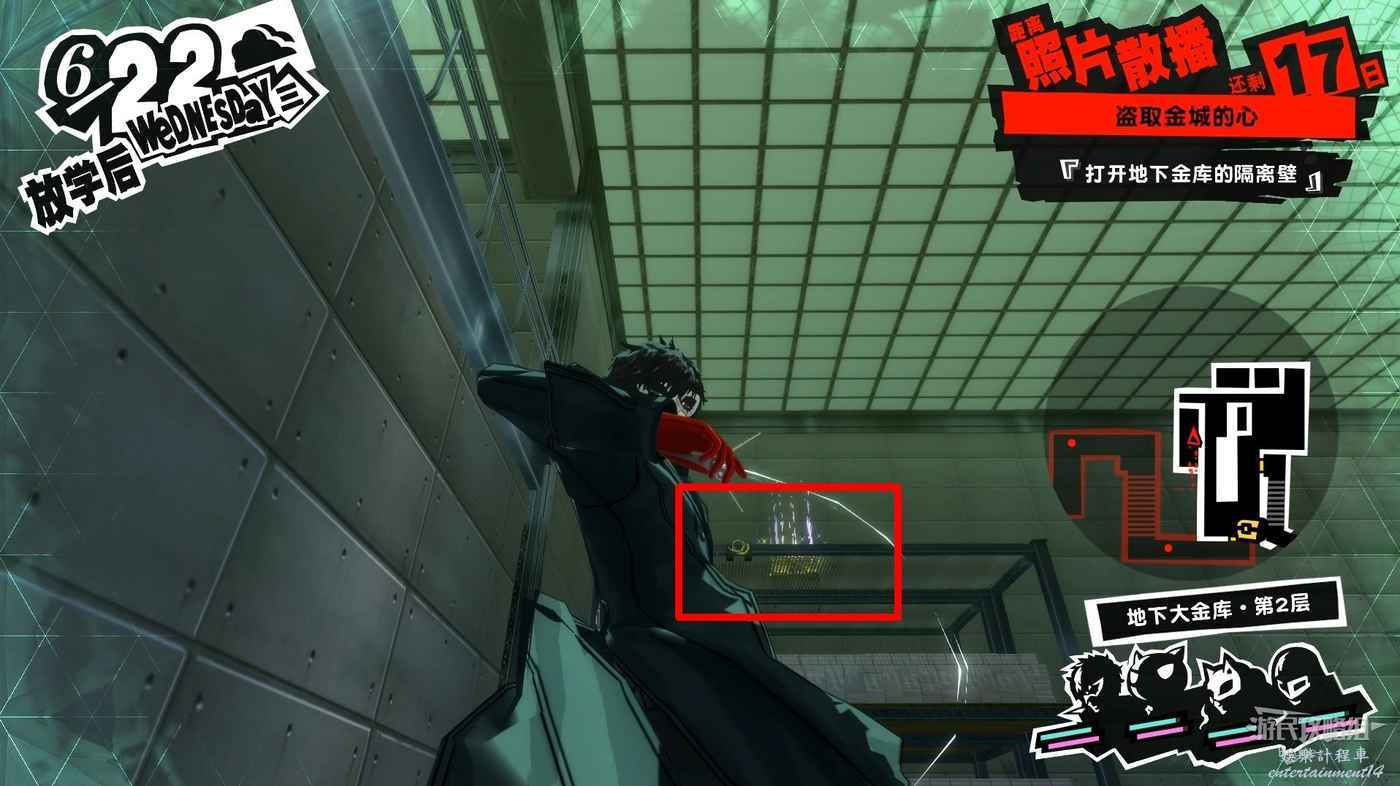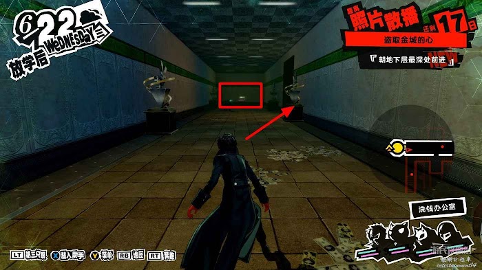 沿著走廊一直向前在北側走廊中間處破壞一個配電盒,關閉走廊中的監控。