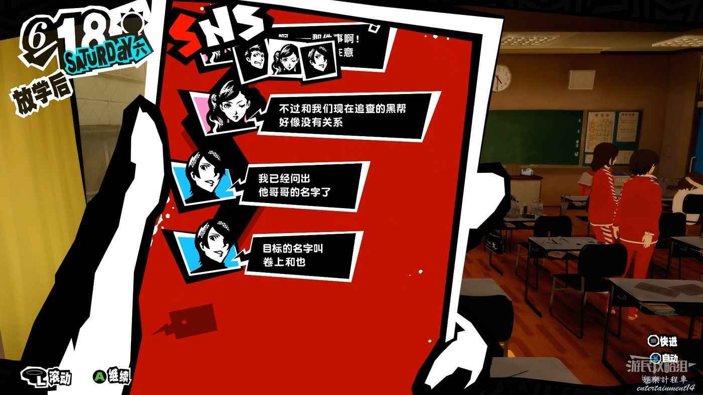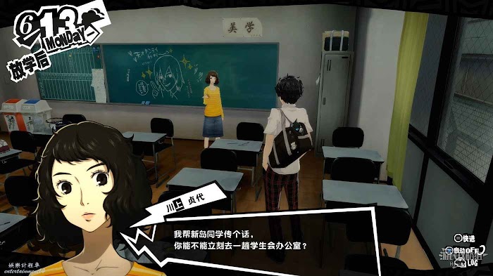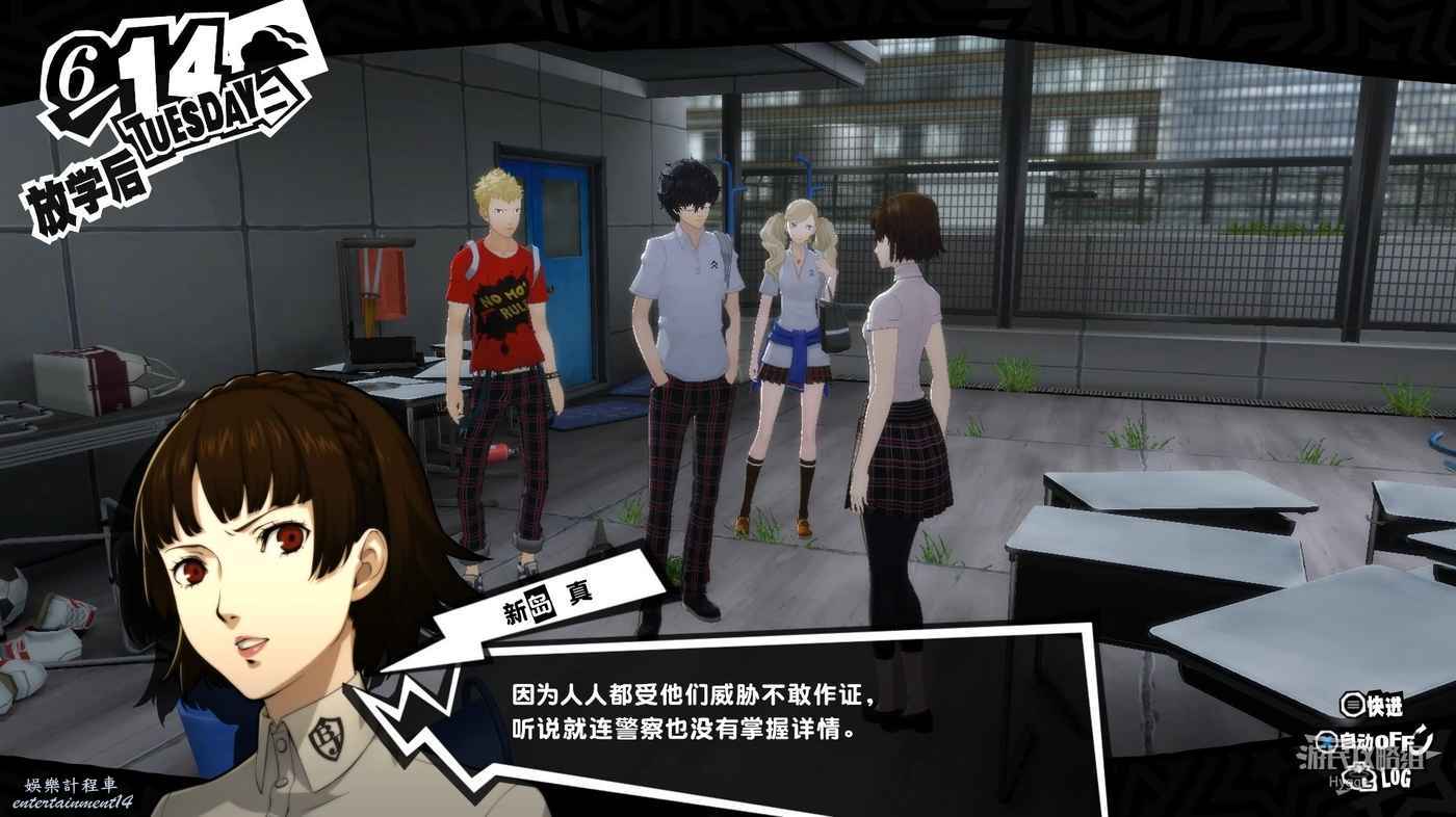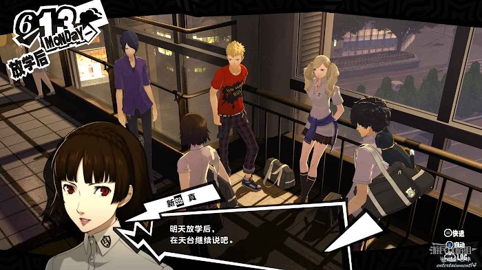 放學後來到天臺與新島真交談,得知她想要讓其悔改的對象是一名經常脅迫學生的黑幫老大。黑幫老大的名字她並不清楚,只知道黑幫經常在澀穀活動,剩餘的需要我們自己調查,行動的期限則為兩個星期。