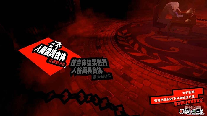 在進行城堡探索時偶爾會觸發合體警報,此時前往天鵝絨房間進行人格面具合體,獲得的新人格面具會擁有更高的數值和屬性。