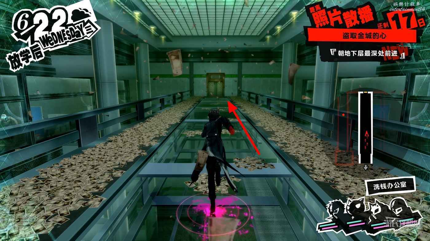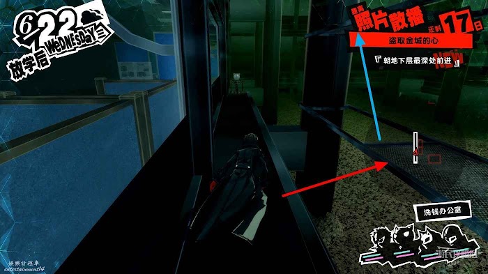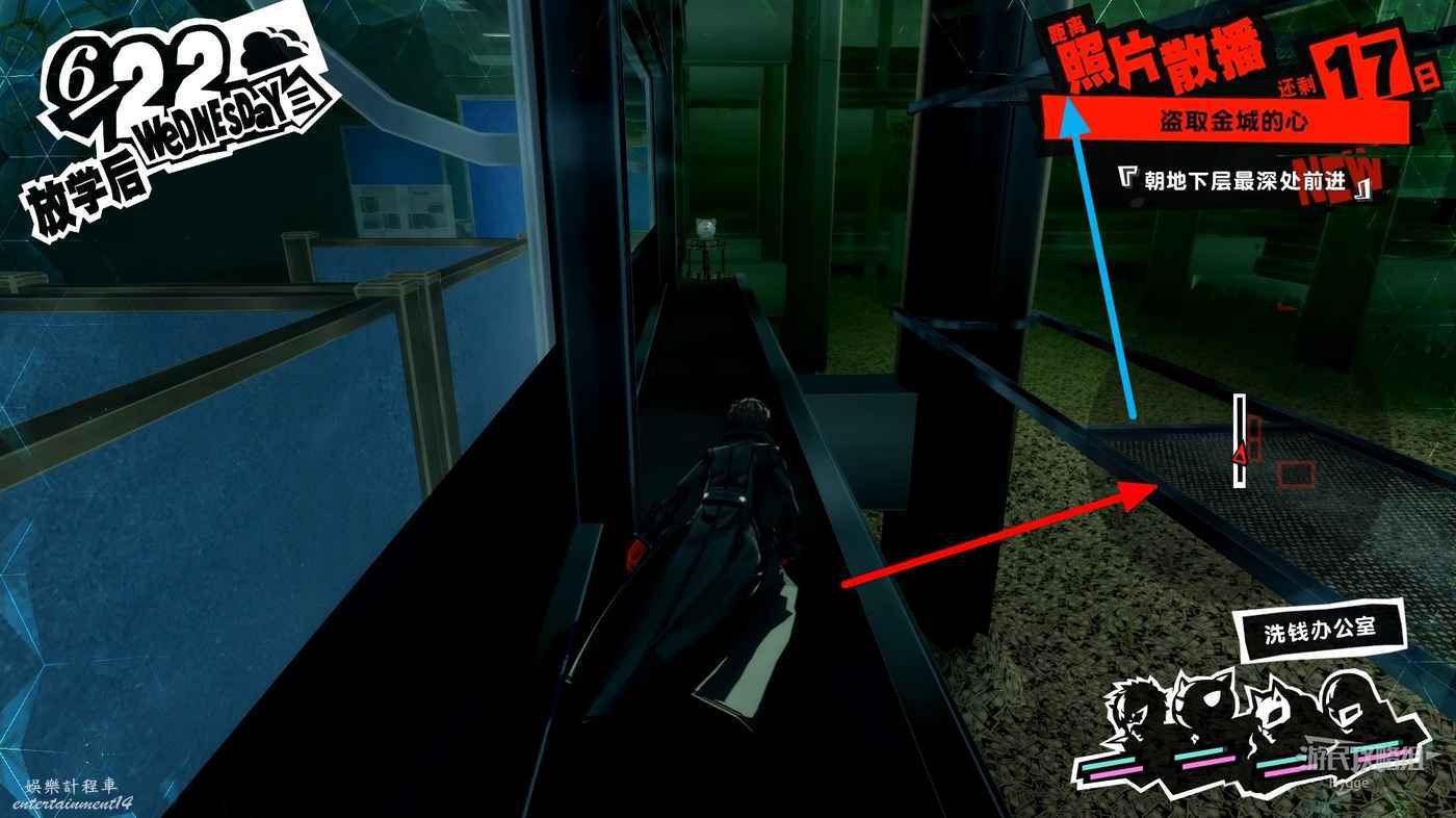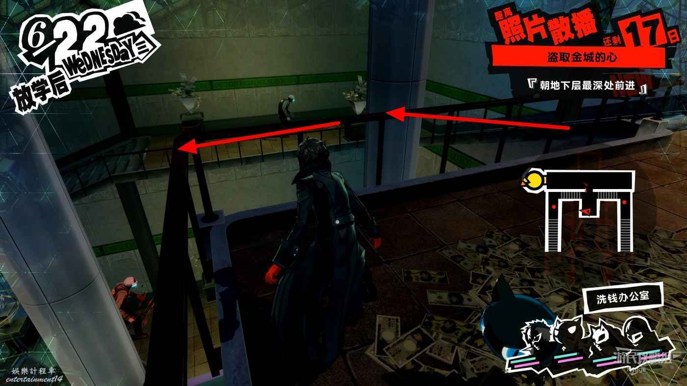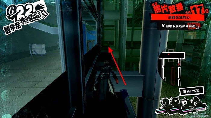 進入洗錢辦公室後沿著透明橋直走進入前方走廊,進入走廊後右邊的門無法打開,直接向左走即可。