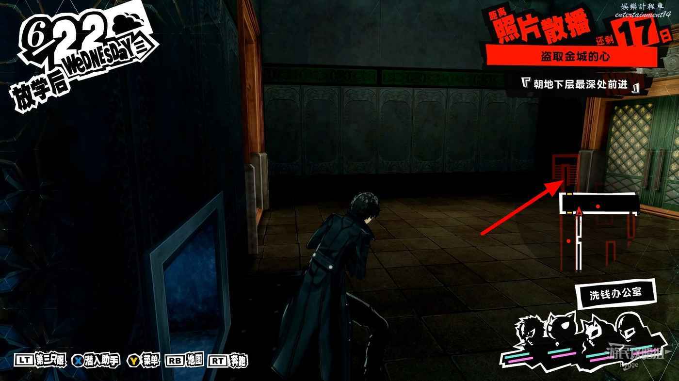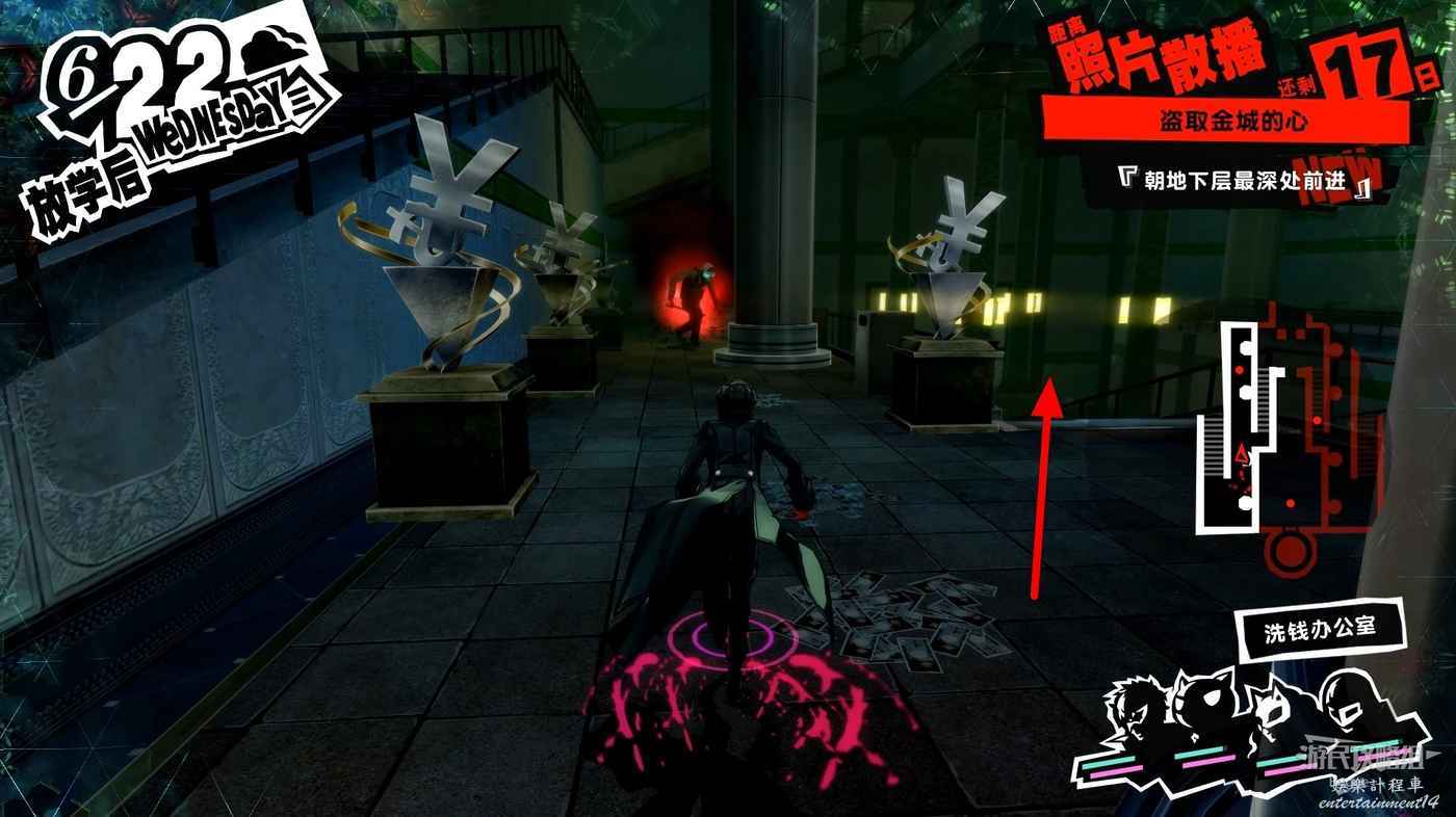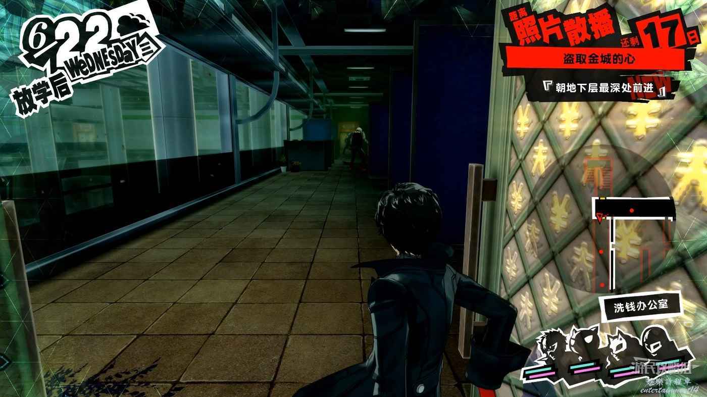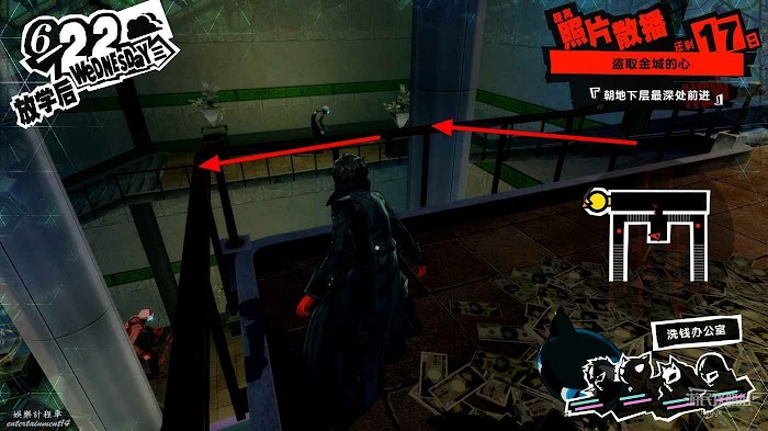 進入洗錢辦公室後沿著透明橋直走進入前方走廊,進入走廊後右邊的門無法打開,直接向左走即可。