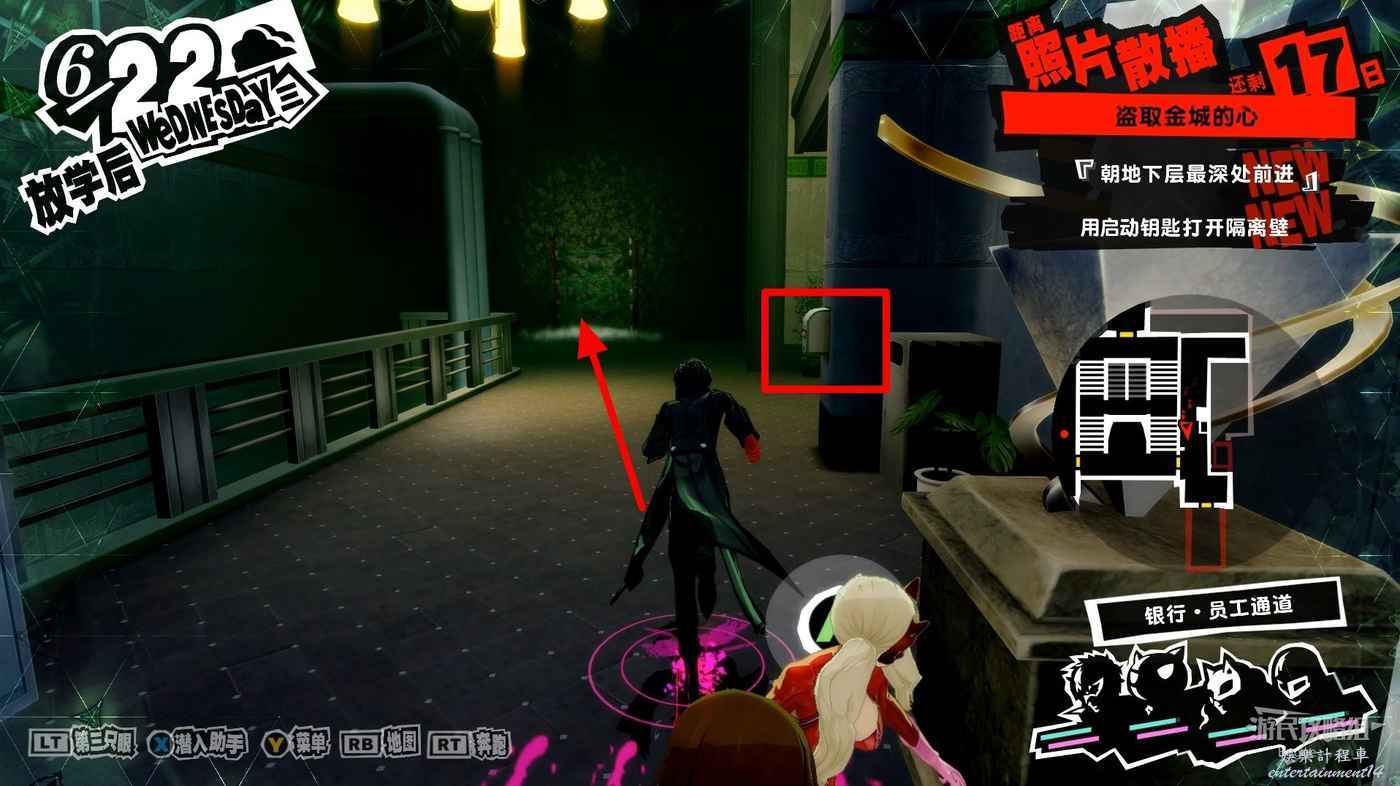 回到下層的監控室消滅留在其中的強大警衛獲得【啟動鑰匙·左】和另一半的銀行地圖。