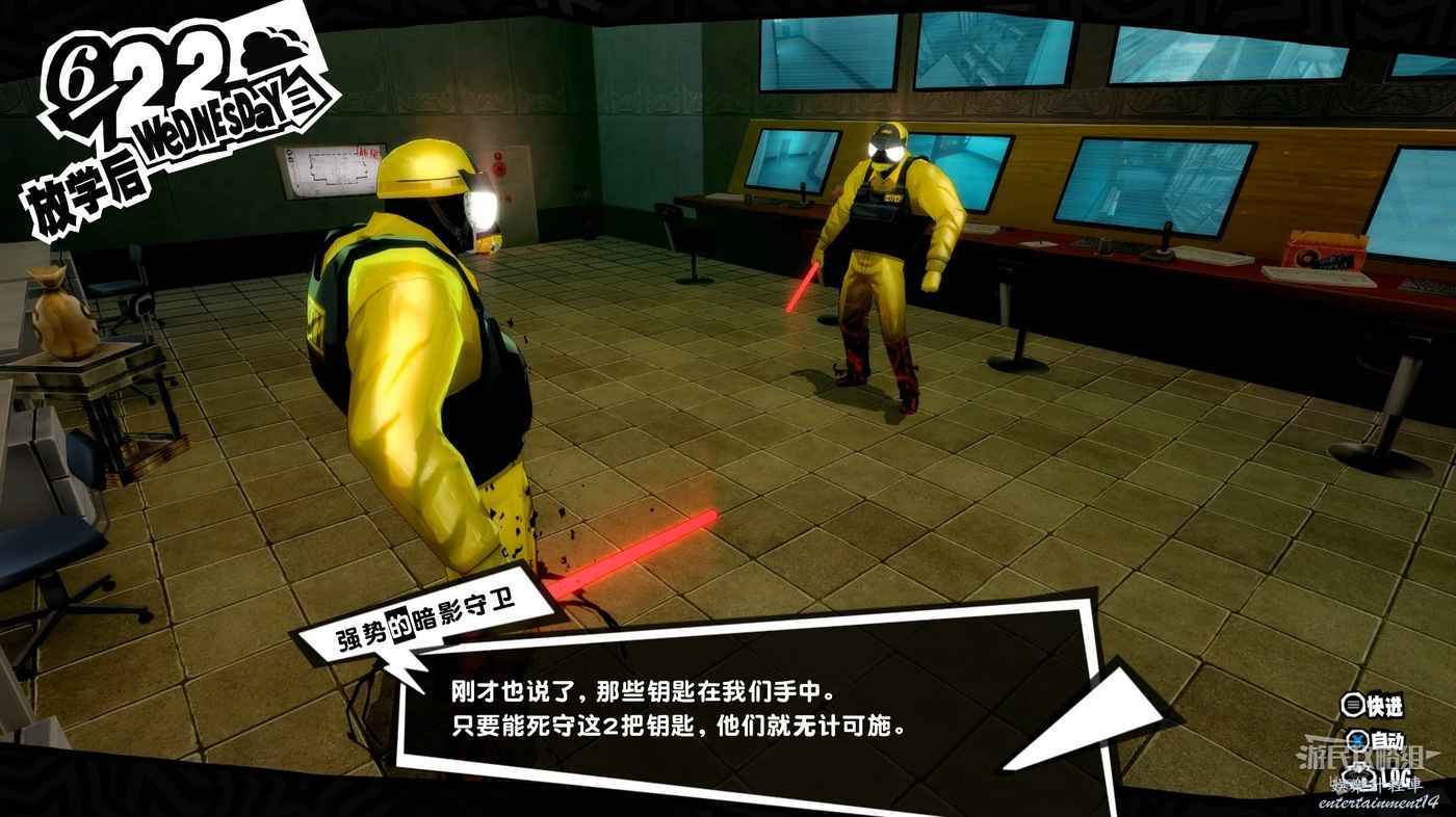 在二樓的監控室中假扮警衛求援將強大的暗影守衛引來此處並將其消滅,隨後可以獲得道具【啟動鑰匙·右】。