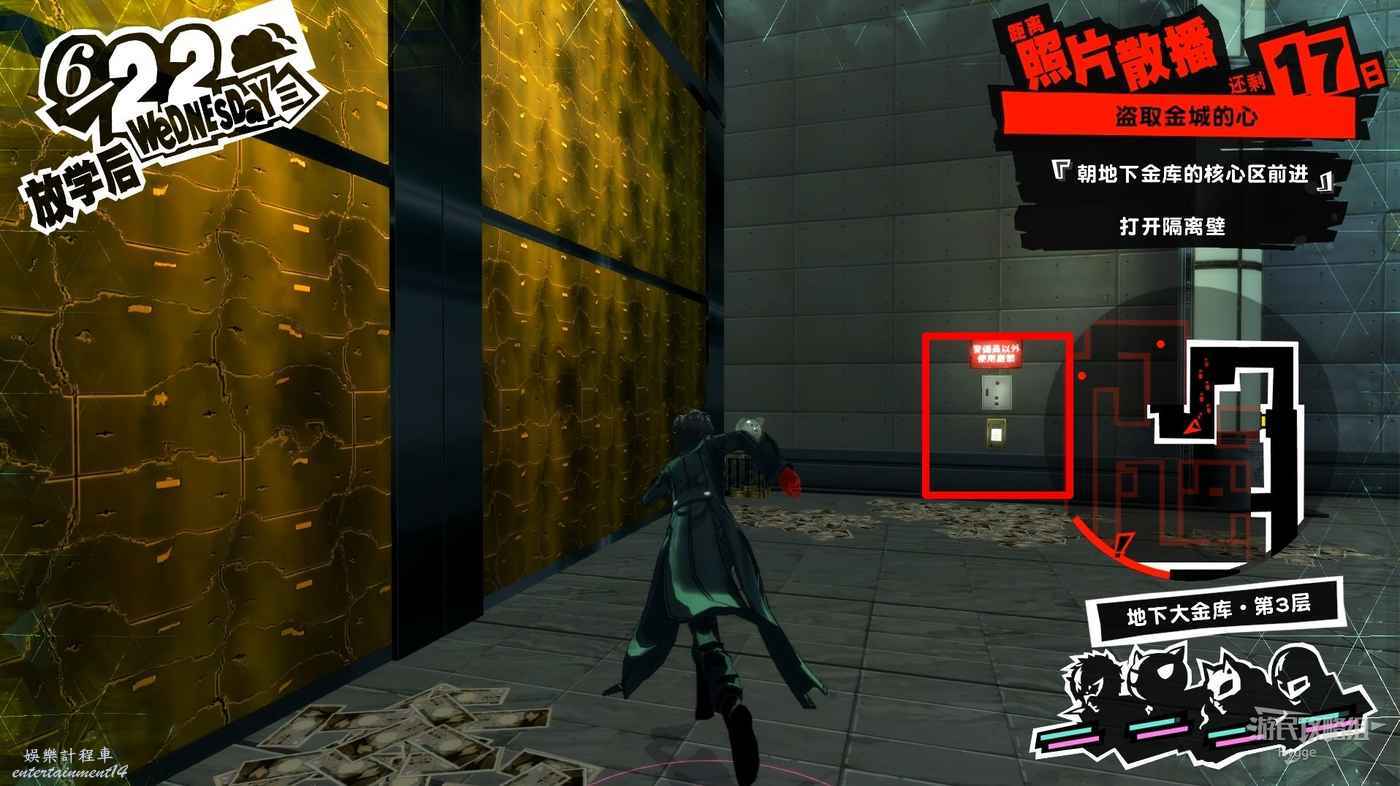 向區域另一側前進消滅金城的打手後乘坐電梯向下進入地下大金庫。