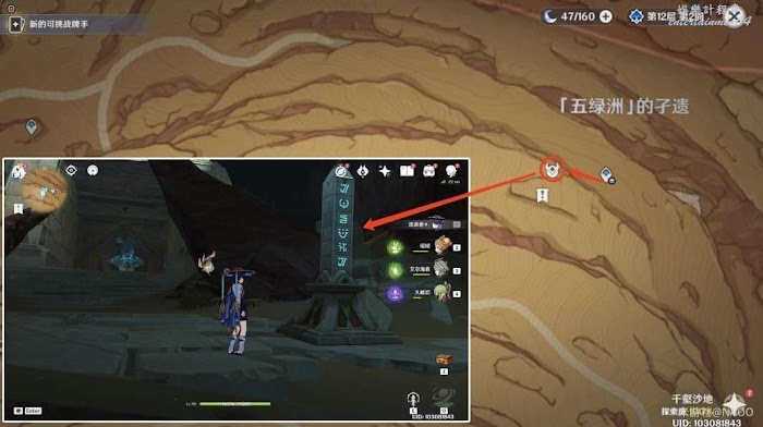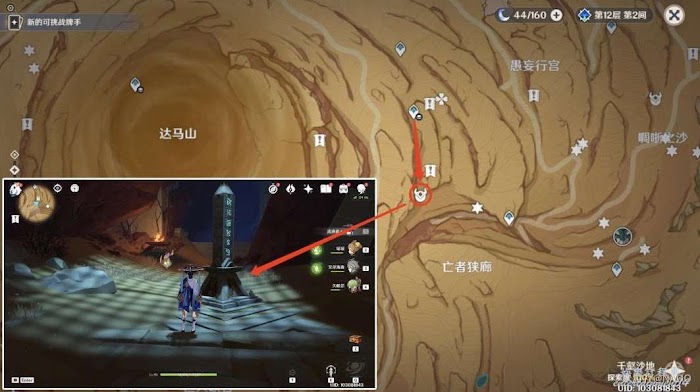 尖碑位置:「啁哳(zhao zha)之沙」北側的鎮靈神龕處