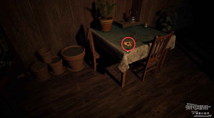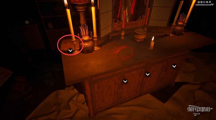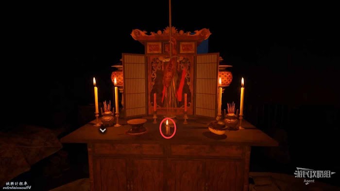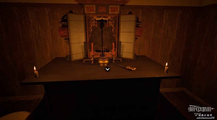 遊戲一開始的出生點房間對面,打開廚房的門看到個祭壇。