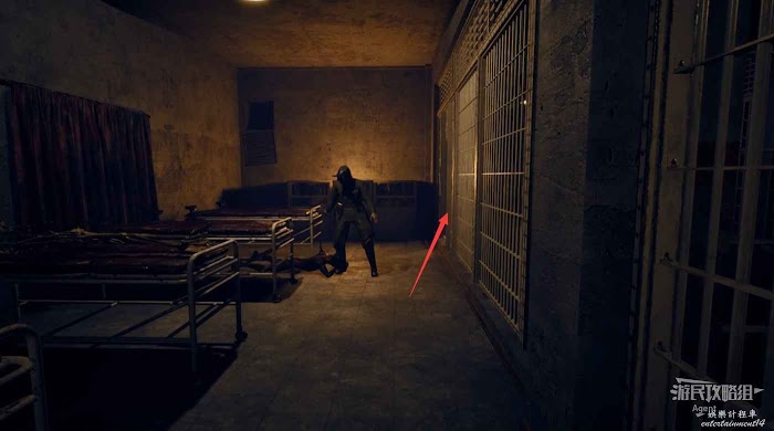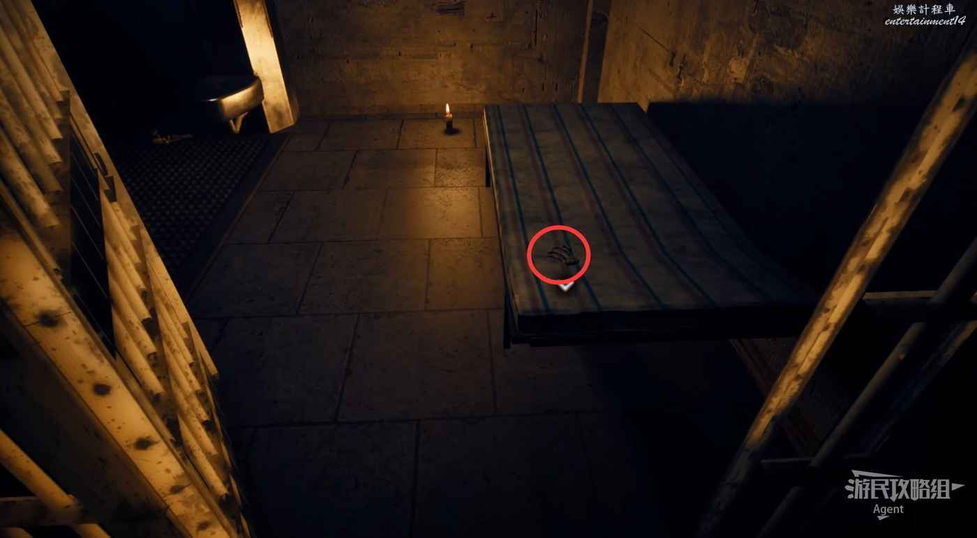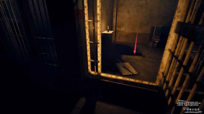自己牢門旁的這個監牢,靠近時會被鬼子追,進去拿到神父的下頜,然後趕緊爬進通風管。