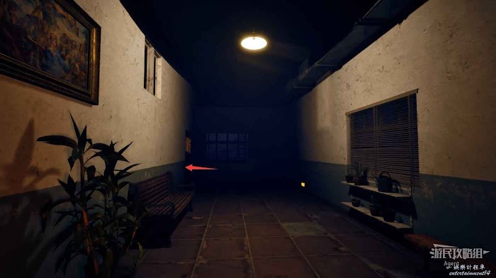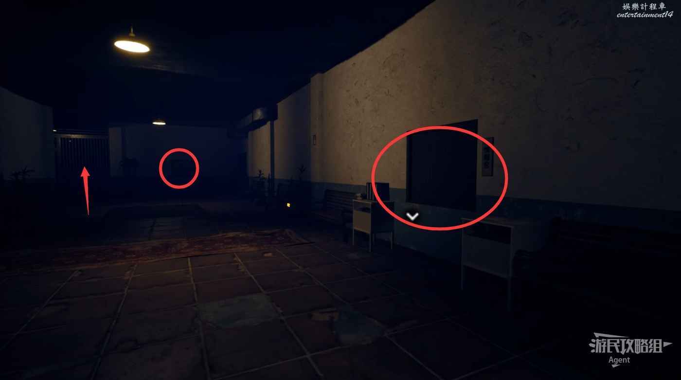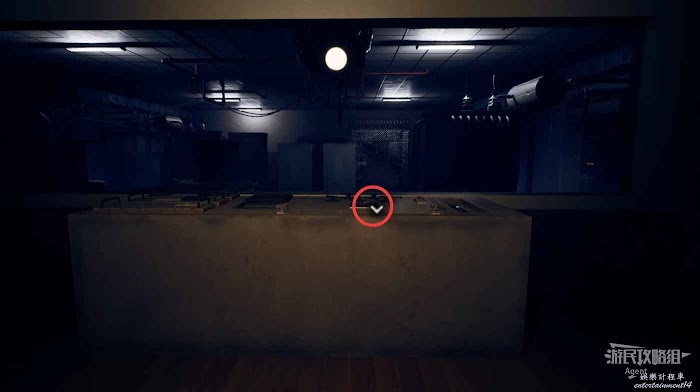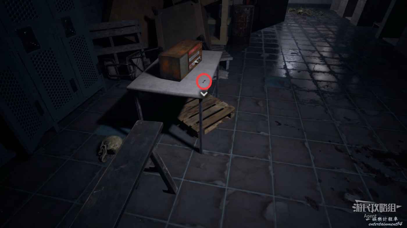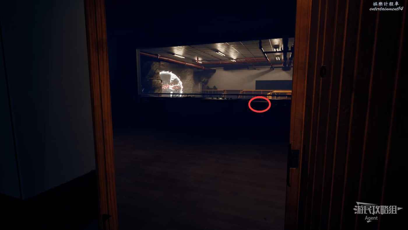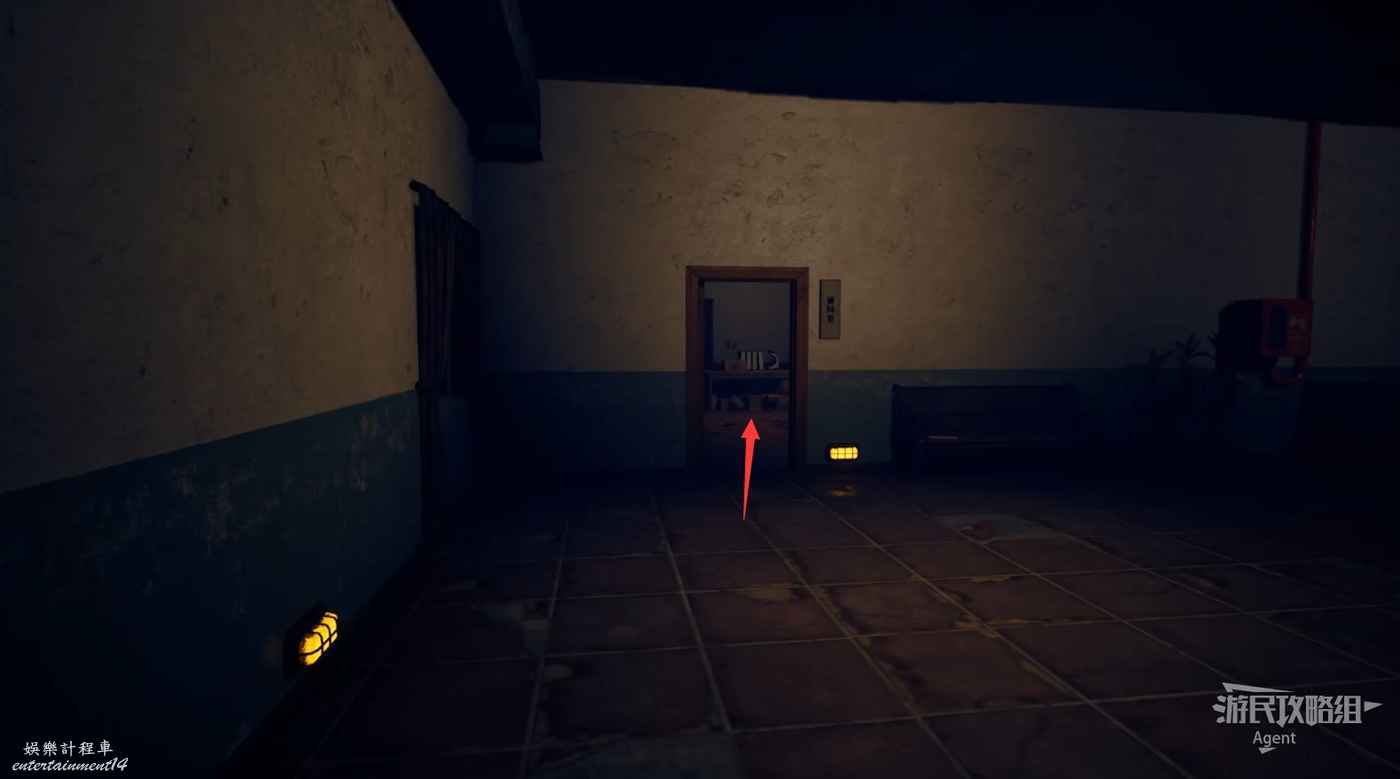 走過走廊來到電梯處,先進門到裡面的第七實驗室觀察室,拿到電梯鑰匙,然後再去乘電梯。