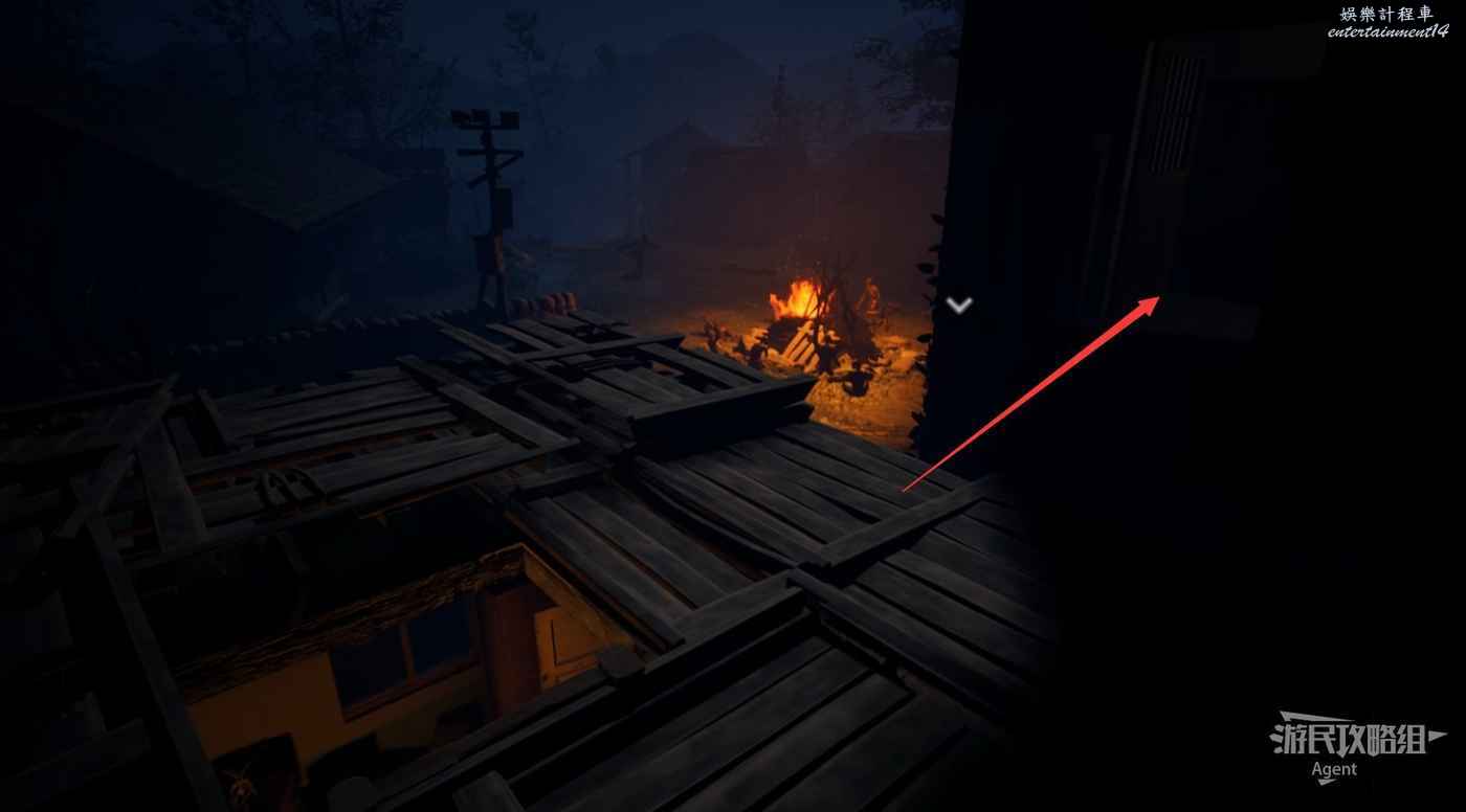 回到篝火旁,把蠟燭交給剛才那人,得到小屋鑰匙。用鑰匙開門進入旁邊的小屋。