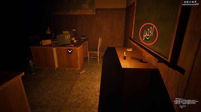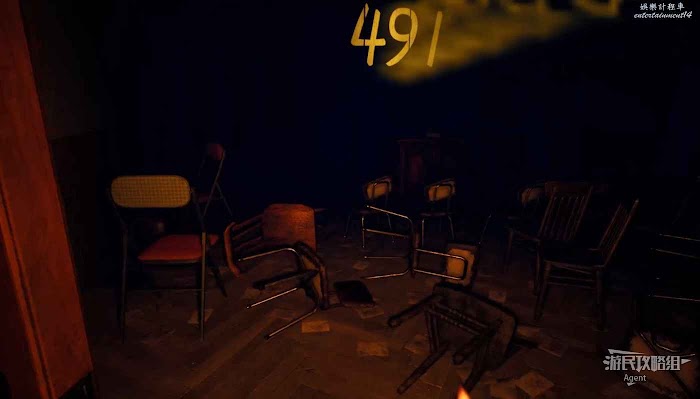 進入映寫室,按牆上的按鈕關燈,看到數位491。先記著,後面有用。