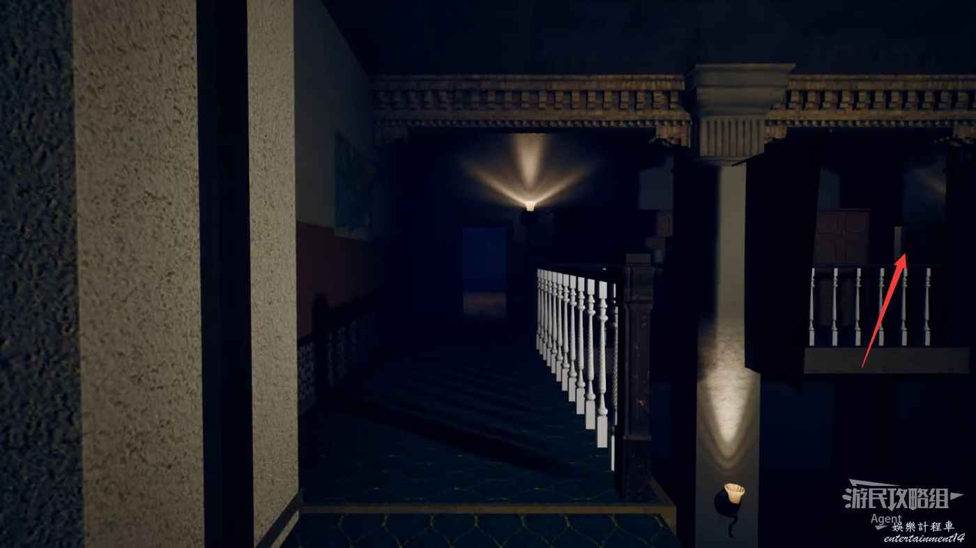 拿到大廳左側雕像,再往前走發現來到了大廳的二樓右側。