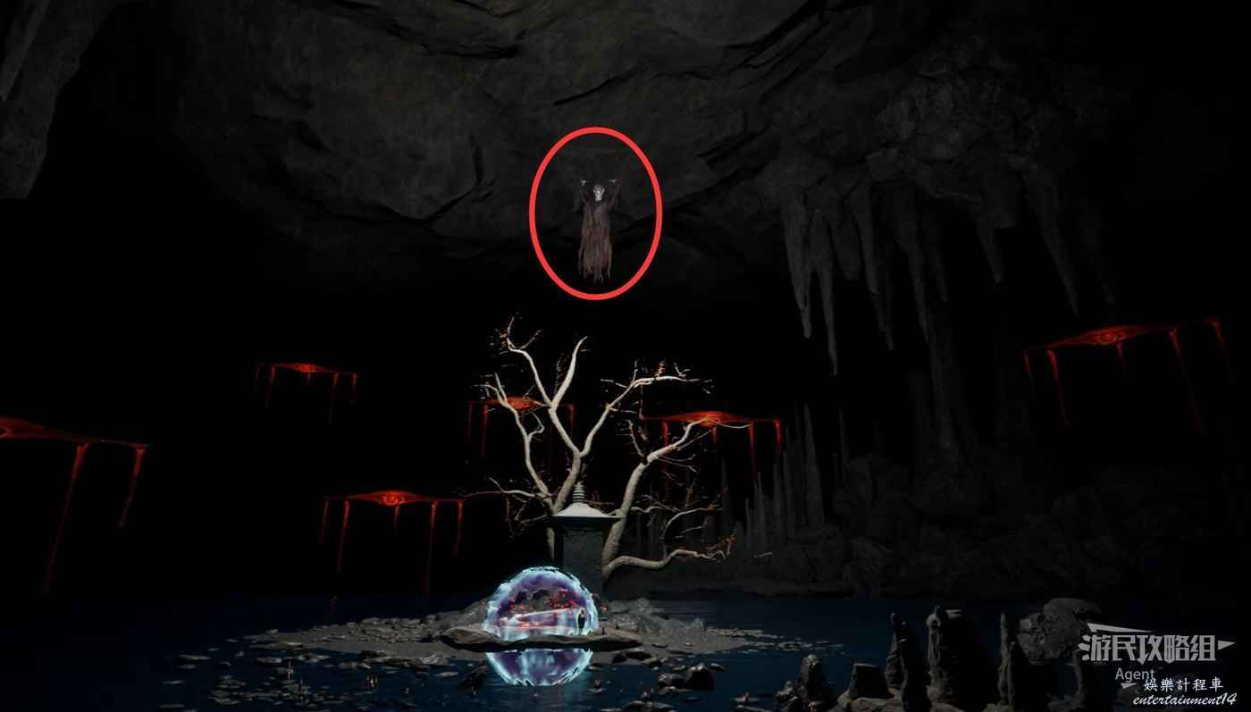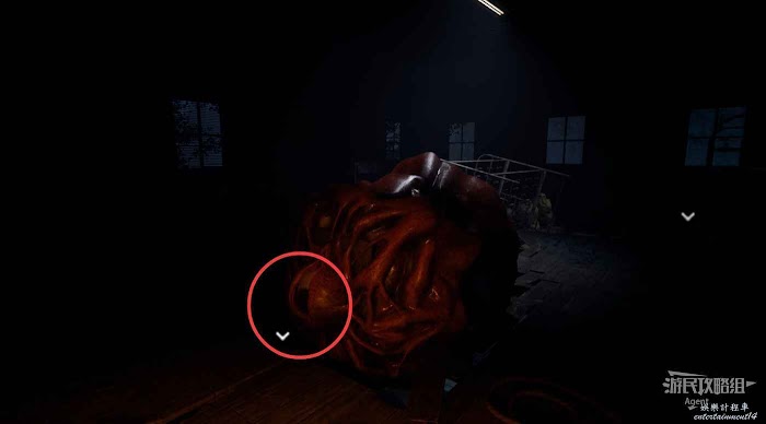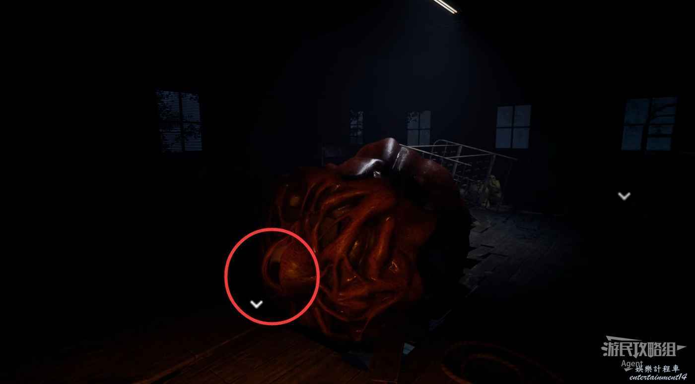 怪物會到樓下徘徊,可從地板上的縫隙看到下面的怪物,待它走到大眼球正下方時,立即與大眼球互動,粘液就會滴到怪物身上殺死怪物。